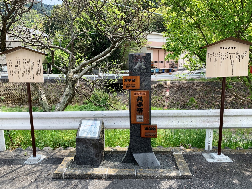 東海道五十三次の20番目の宿場にあたり、東海道のなかで最も小さい宿場と言われている。本陣1軒、脇本陣2軒、旅籠屋24軒があったが、遺構は残されてなく、本陣跡と問屋場跡の標柱があるだけだ。しかし、周辺には昔ながらの街並みや、源氏・今川・徳川時代に亘る史跡が数多く残されている。丸子で最も有名なものは、歌川広重の作品と膝栗毛の題材として知られる名物とろろ汁です。そこで描かれた丁子屋は、昔の名残を残しつつ現在もとろろ汁を食することができる。