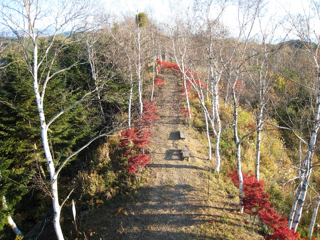 萱野高原は標高1,200mで、展望台から伊那谷を一望することが出来る。 遊歩道が整備され、四季折々の花を楽しむ事が出来る。10月中旬頃から紅葉が始まります。