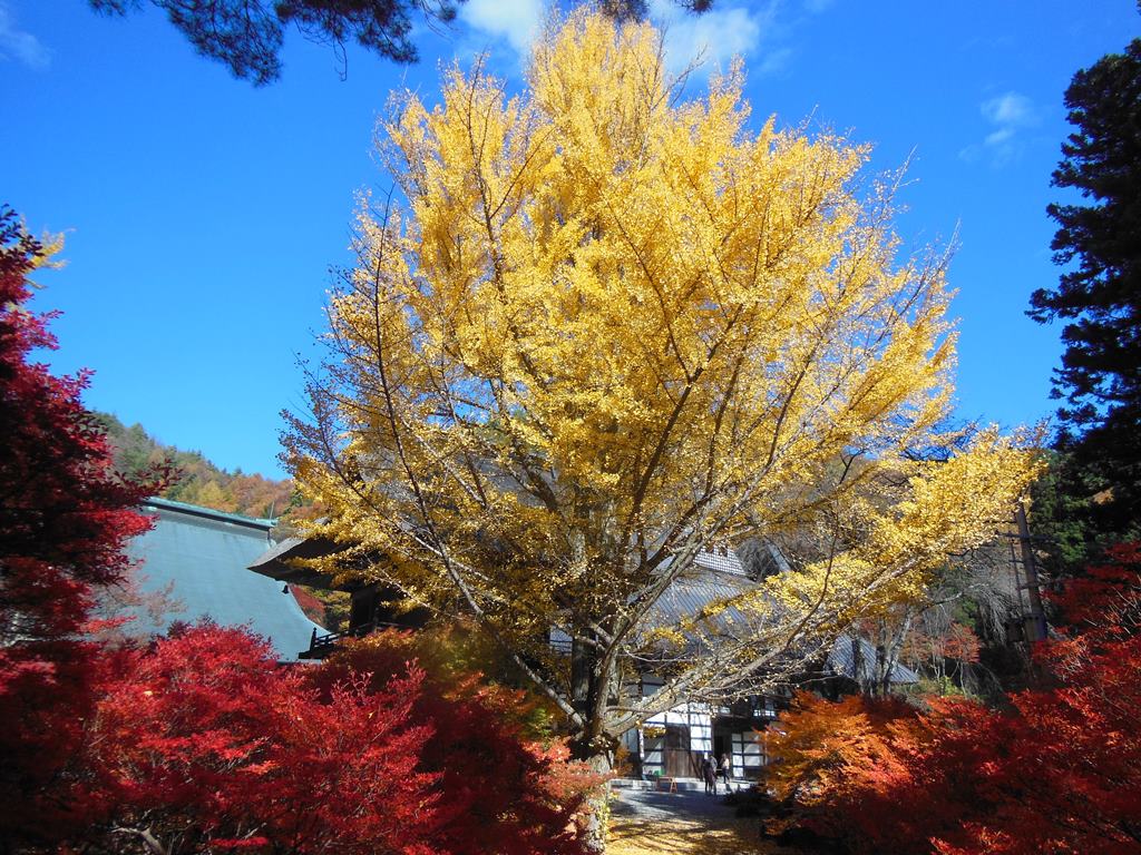 霊松寺のオハツキイチョウは、厳しい気象条件等により先祖帰りの形を取った珍しいイチョウです。葉に銀杏様の物を宿すもので、葉の約一割程度がこの形を取ります。子宝お守りとして持ち帰る方が多勢いらっしゃいます。(霊松寺HPから転記)