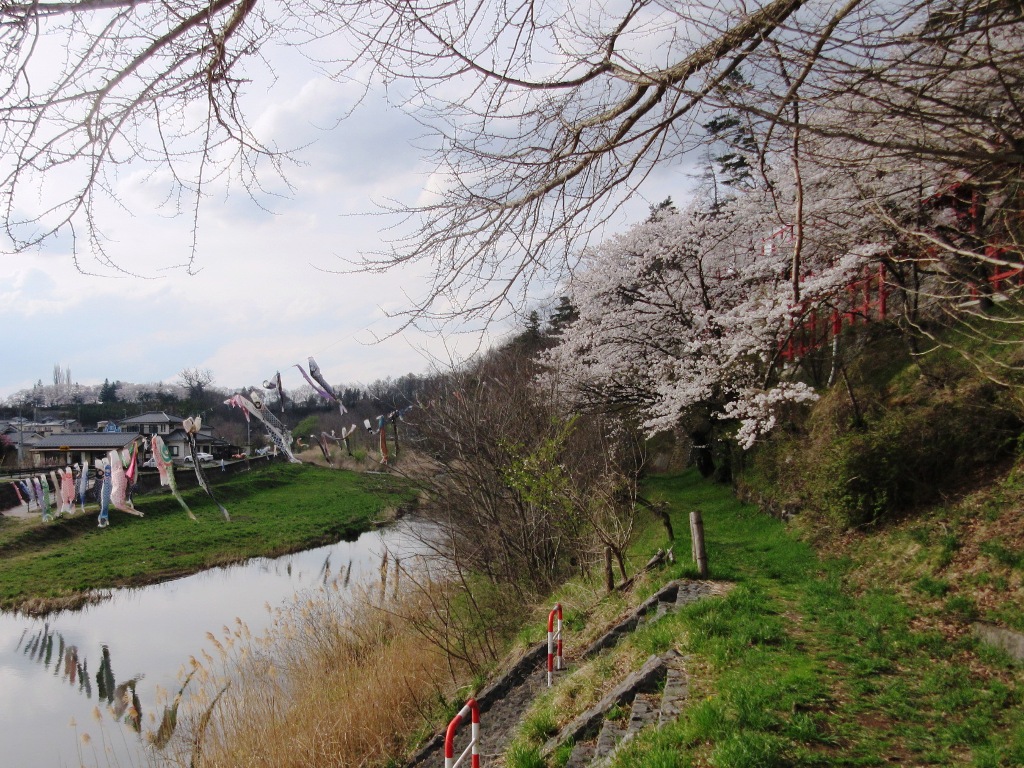 日本五大稲荷のひとつで、桜は湯川の土手に植えらている。
