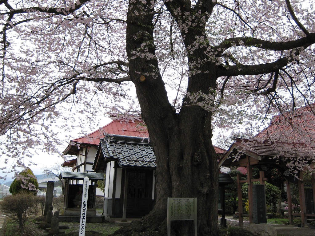 幹周4.29メートル、樹高約17メートル、枝張りもよい。エドヒガンはサクラの仲間では最も寿命の長いもので、従って古木も多いが、幹囲4メートル以上で幹に傷のないものは少ない。その点、本樹は一部枝に枯れた部分もあるが、主幹には傷がなく、健在である。日本のサクラの古木として長く保存できることは望ましい。(須坂市観光協会HPから転記)