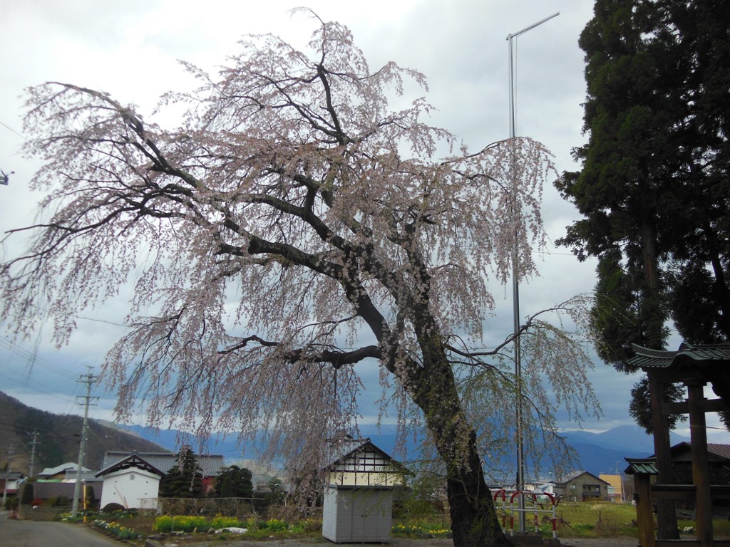 亀倉神社の桜は、神社の参道入り口を左右一対で飾り、同時に植樹されたと見られる。左右とも幟の鉄柱と同じ高さで、開花時は境内に植えられた杉の社叢に映えて色鮮やかである。 神社には、五基の古墳があり五塚という地名が残っている。また神社の前を米子不動に続く信仰の道が通り、但唱開基の萬龍寺に隣接し霊域ともいえる空間を形成している。 花の季節には、米子不動に向かう道すがら、桜は渓流のようにしだれて流れ信仰の道を明るく彩る。 須坂市の歴史と信仰を語る古樹として貴重である。