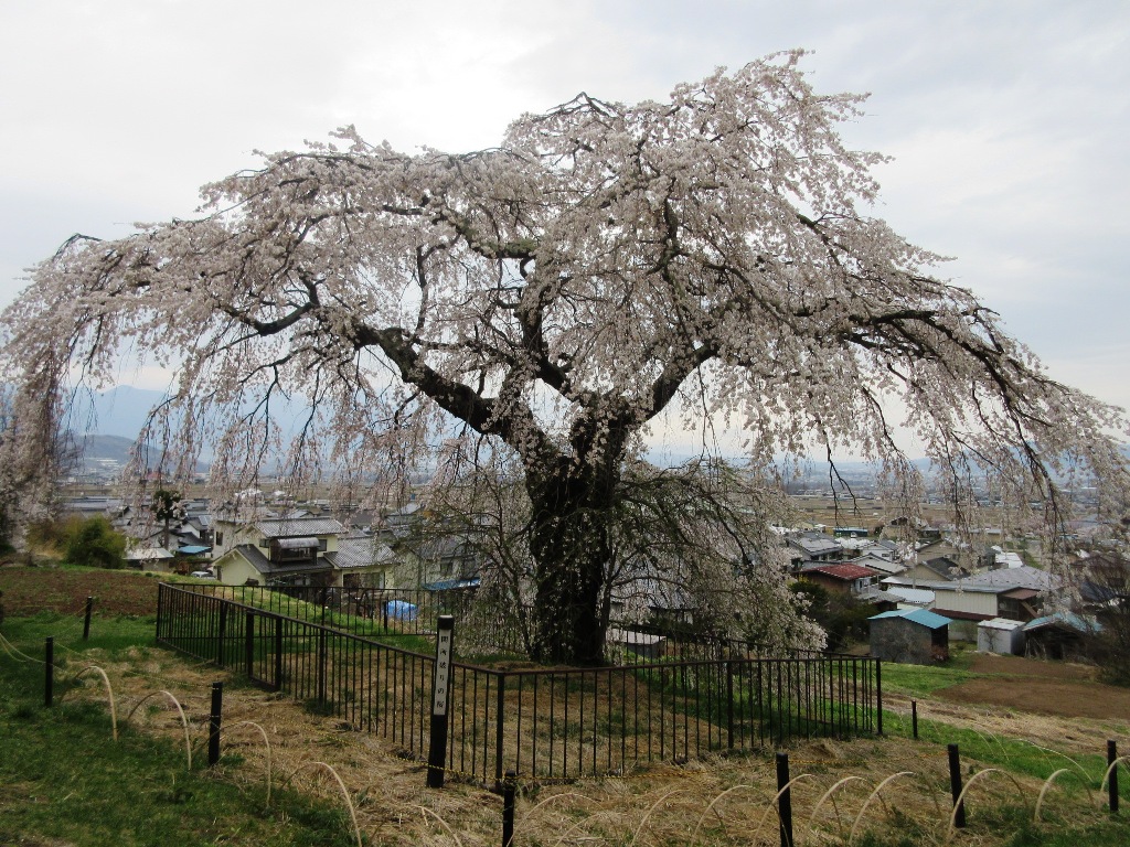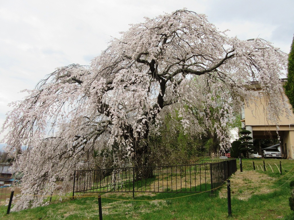 五郎兵衛記念館の横にあるシダレ桜です。道の駅ほっとぱーく浅科駐車場から見える。