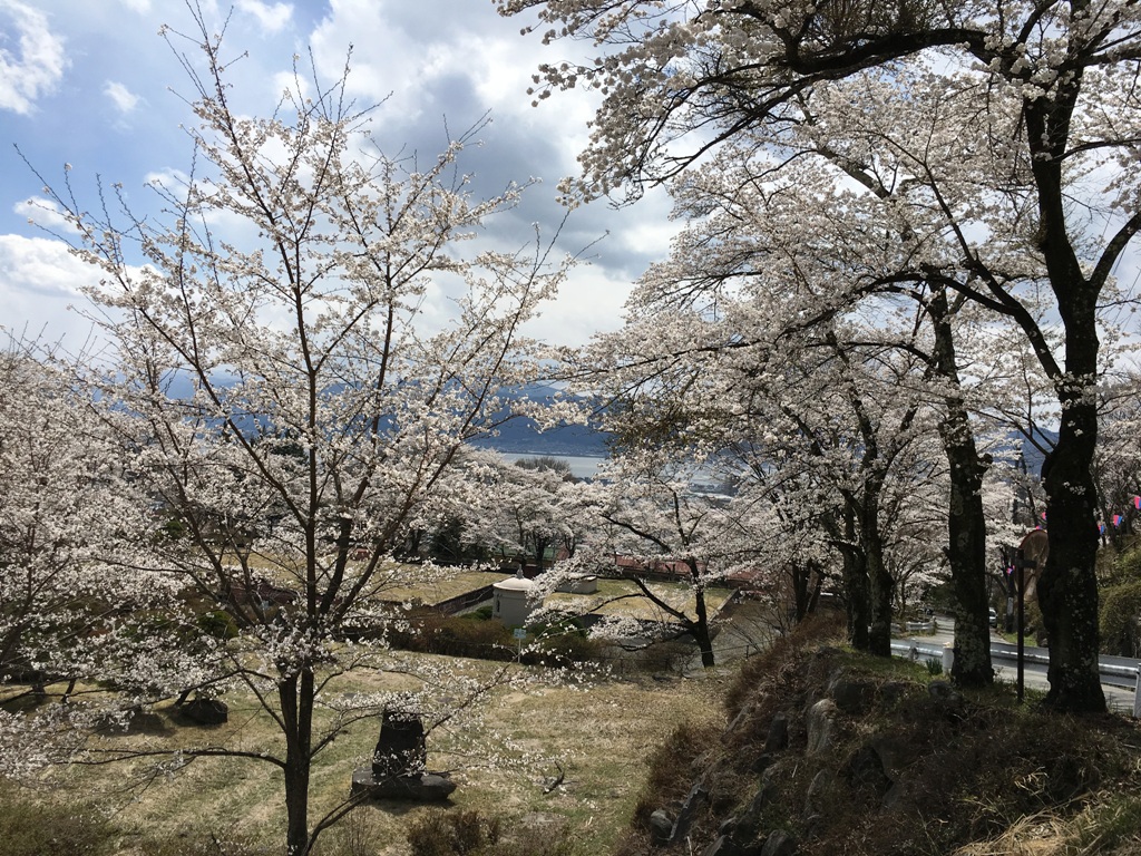 高台にあり、諏訪湖を俯瞰しながら約560本のソメイヨシノ、コヒガンザクラを鑑賞することが出来る。シ-ズン中は弁当を持参の花見客が目立つ。
