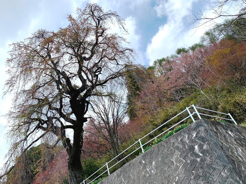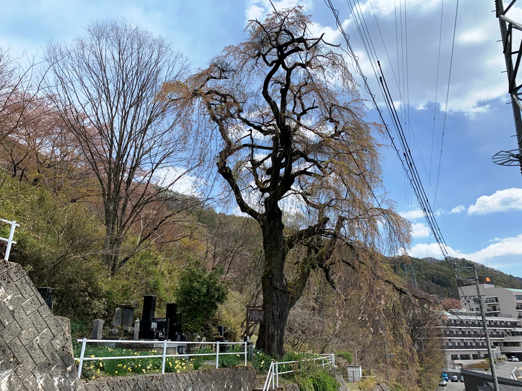 温泉寺の藩濃公霊前のしだれ桜と種類樹齢を同じくするものと思われる。(案内板転記)