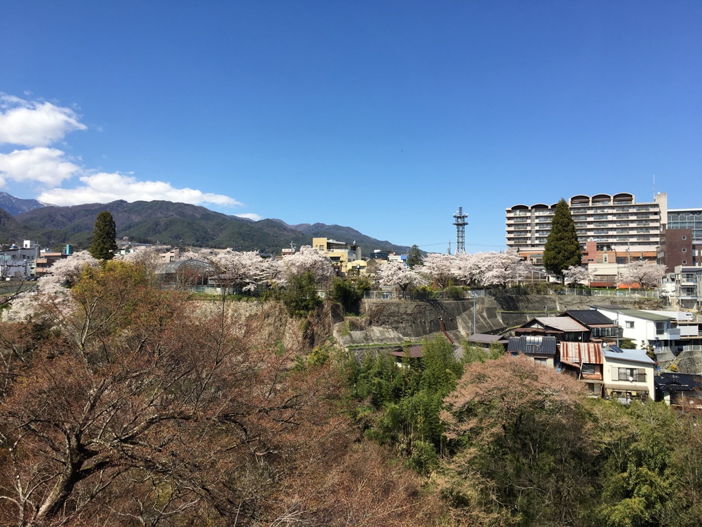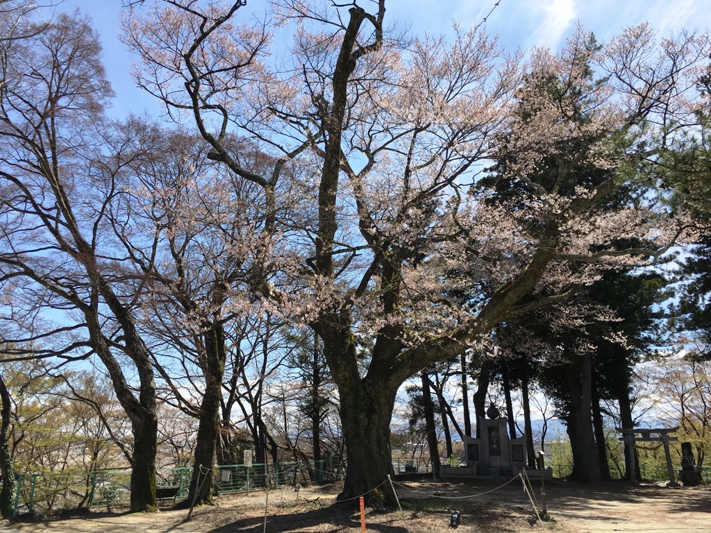 飯田藩家老安富氏によって愛宕稲荷神社に献納され、知久町黒田屋千代蔵氏によって境内の東方、飯田城(長姫城)を望める場所に植樹したと伝えられる。空に向かって雄々しく伸びる均整のとれた樹形は安富桜を偲ばせる風格を持つ。幹回り4.3m、樹高16m、樹齢推定200年。(案内板)