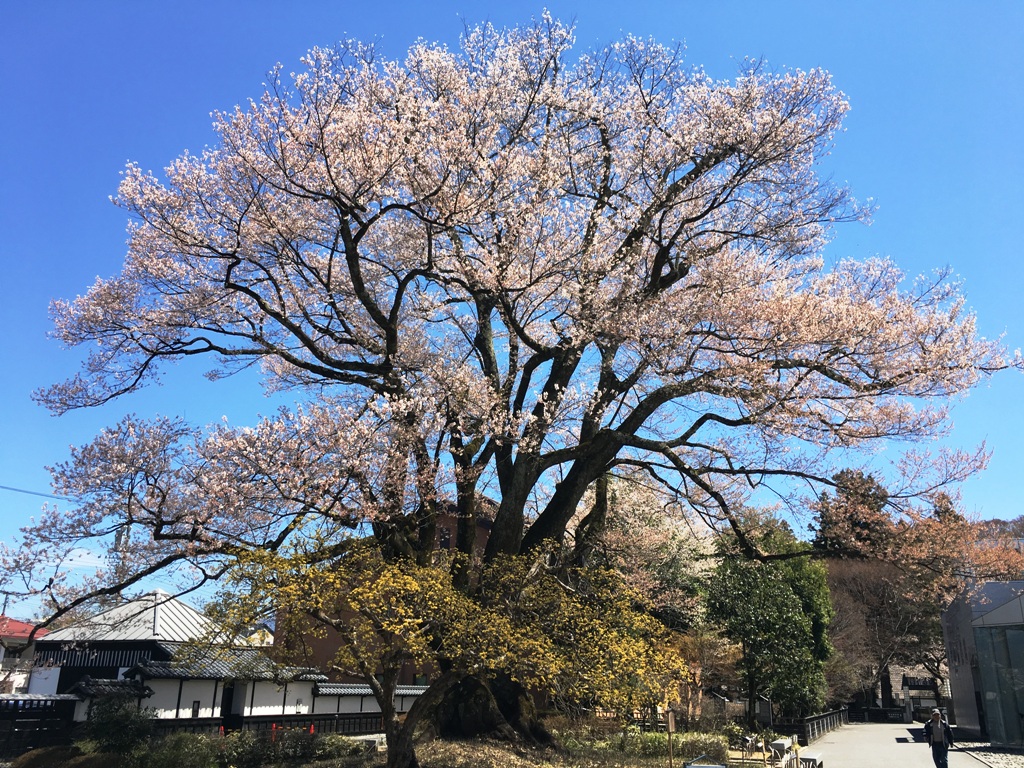 飯田市美術博物館の庭にある県指定天然記念物。長姫の江戸彼岸ともいわれる。樹齢450年以上の古木。(南信州ナビHPから転記)
