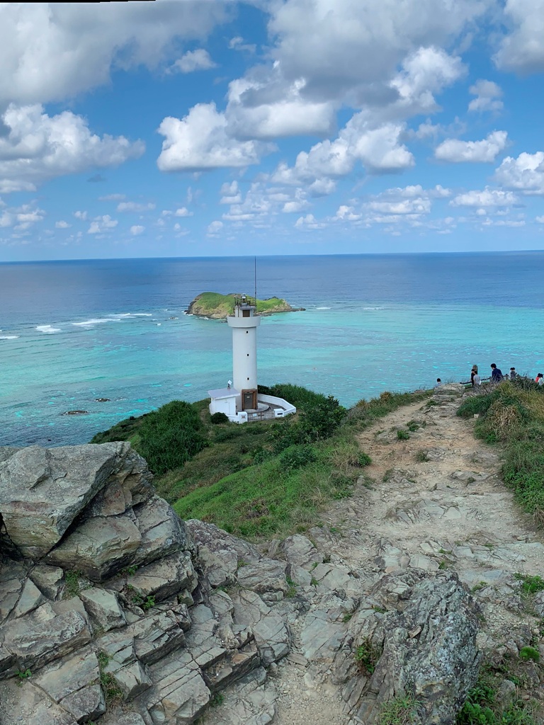 平久保崎灯台は石垣島の最北端に位置する。黒毛和牛の放牧地を抜けて進むと灯台が見えてくる。眼前が全て海に囲まれ、そこから見える景色はサンゴ礁に囲まれて様々なブルーを見せる海、まさに絶景です。(石垣島観光ナビHP抜粋)