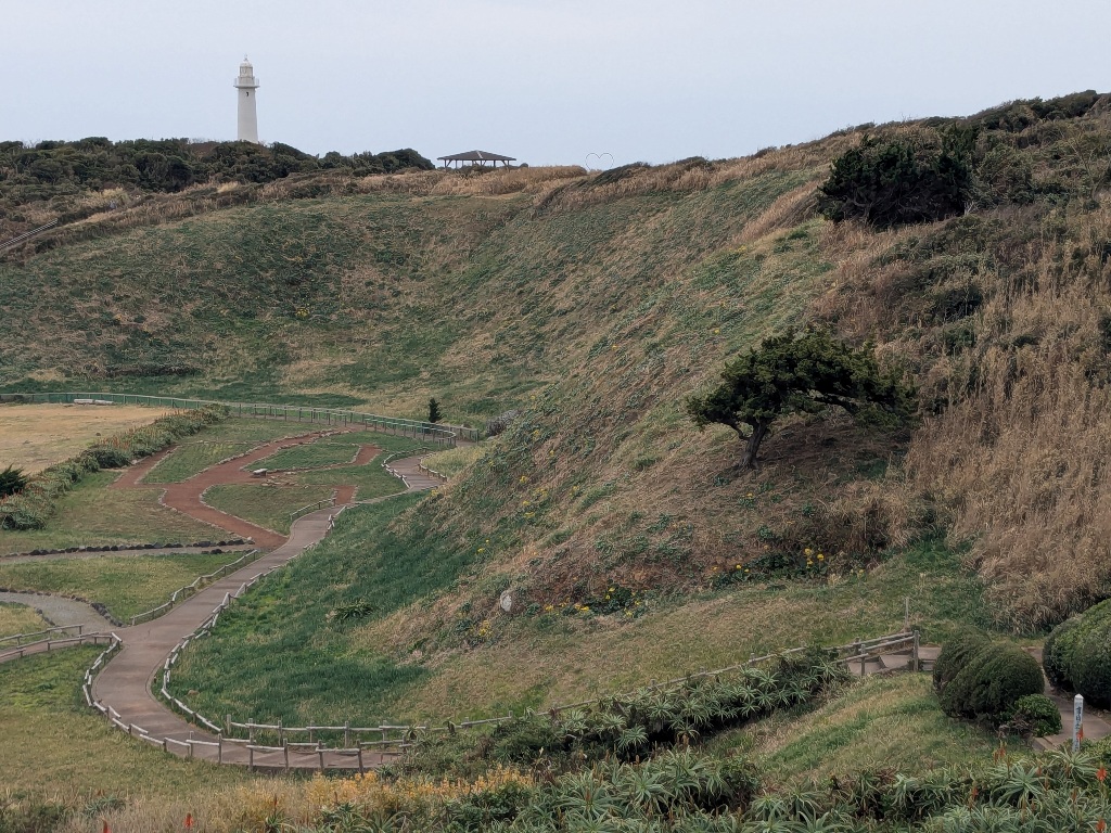 灯台周辺は「爪木崎自然公園」として整備されており、遊歩道を歩けば伊豆七島を望む雄大な景観が広がる。晴れた日には利島・新島・式根島などが遠望でき、太平洋の深い青と白い灯台のコントラストが美しい。灯台自体は内部公開されていないものの、外観をさまざまな角度から眺められるため、写真愛好家にも人気が高い。