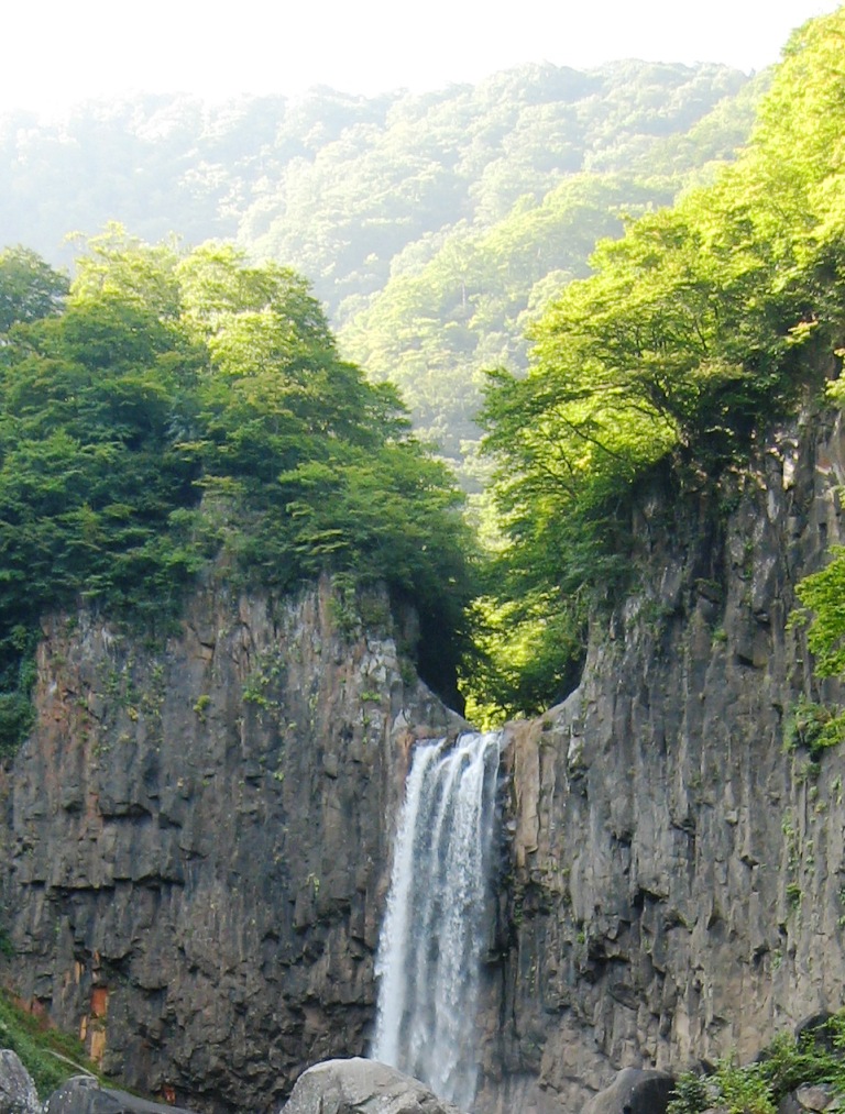 「日本の滝百選」に選ばれた名瀑。マグマが冷却されたときにできた、柱状節理が良く発達し、落差55メートルの高さから水が落ちる豪快な様子と音から「地震滝」とも呼ばれています。春は雪解けで水量が爆発的に多く、夏は涼しく、秋は紅葉で美しさもひときわです。(妙高観光局HP転記)