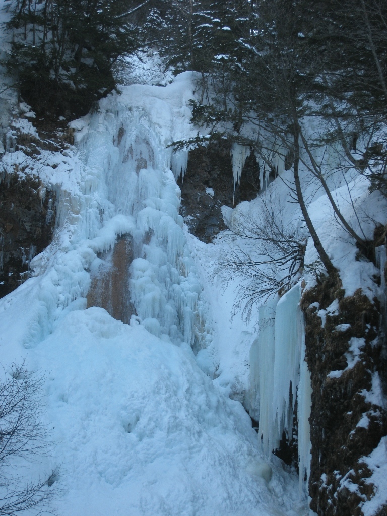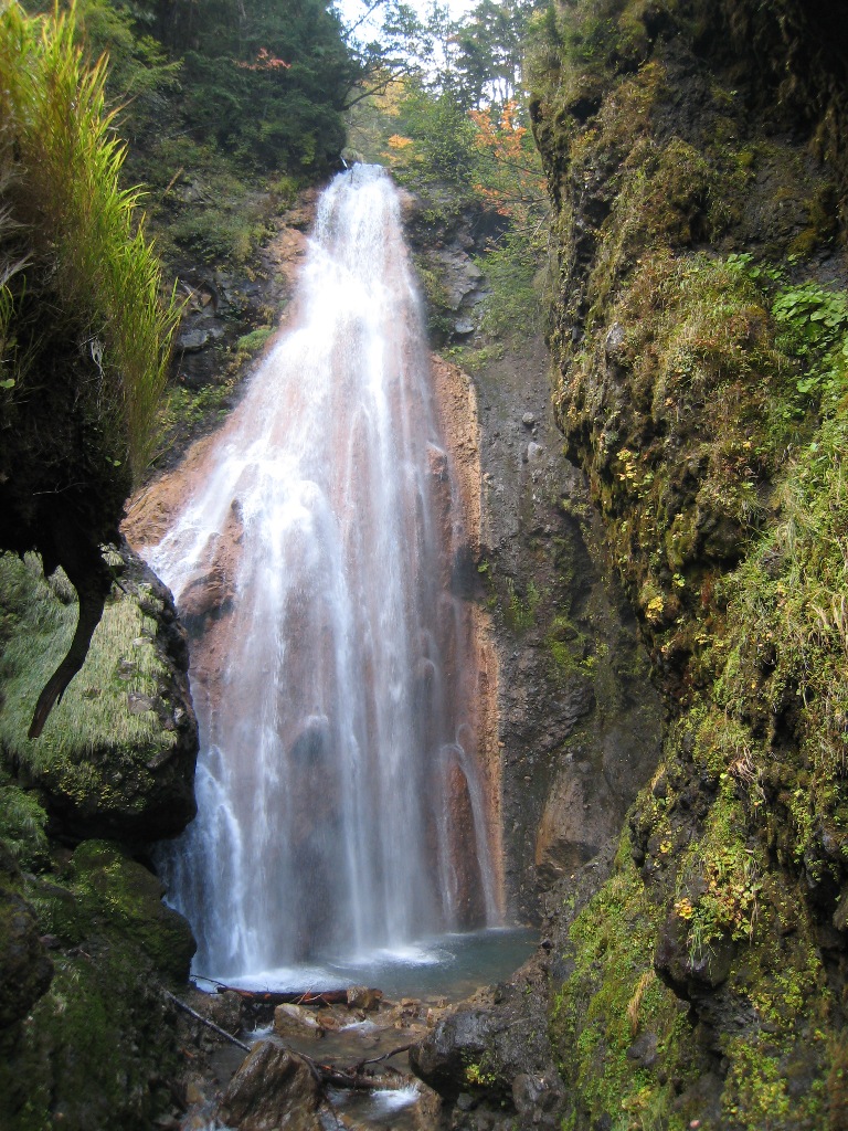 滝の合流点からの高さは、三本とも50~60mで、黒い沢が最も幅広く、45mあり、水量は小大野川、黒い沢が多い。(案内板転記)