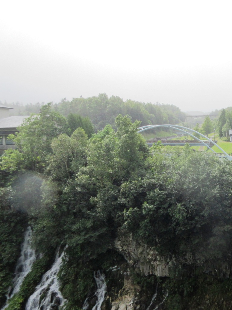 白い髭のようい見える落差30mの滝。自然岩の間から染み出た地下水が勢いよく渓流に 流れ落ち、コバルトブルーにきらめく美瑛川がしぶきを上げている様子を、間近にみられるびえい白金温泉街の観光名所の1つです。日本でも珍しい「潜流爆」に分類される滝である。通称「ブルーリバー」と呼ばれる橋からの眺めあおすすめ。 冬には滝筋と雪の白、岩肌のコントラストが際立つようになり、滝から上がる水しぶきや湯気が樹木に霧氷を作り出し、より幻想的な景色になります。(美瑛町観光協会HP転記)