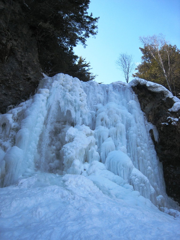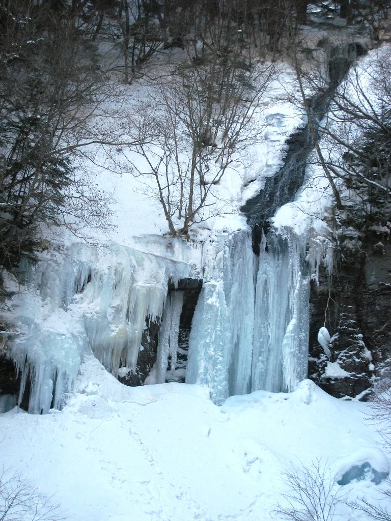 善五郎の滝は、今から約4万3000年前頃、乗鞍火山の高天ヶ原火山帯(2,829m)から流れ出て、乗鞍高原をつくった番所溶岩の中にできた滝です。何回にもわたって流れたこの溶岩の一端が崖となったところに、小大野川が流れて滝になったと考えられています。 水の侵食により、今でも滝は後退を続けており、下流に見える川の淵は、昔の滝つぼの跡です。(案内板転記)