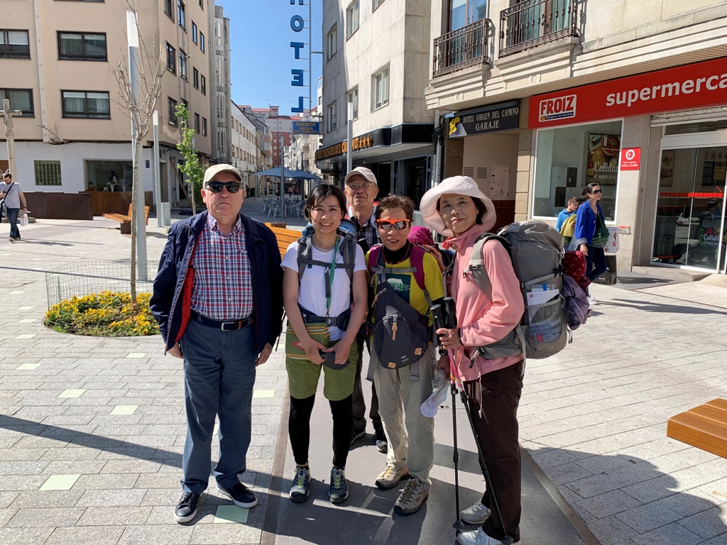 夕食を兼ね市内観光に出かける。商店街を通りPorta do Camino広場に出ると、円形のペレグリーナ教会(La Peregrina)が一角を占める。教会ではミサが行われていた。またトライアスロン大会のイベント用のステージが作られていた。次にホテルで聞いた展望の良いサンタ・マリア・マヨ-ル教会(Iglesia de Santa María la Mayor)に行き、鐘楼まで狭い階段を上がる。ホテルで云われた通りポンテベドラの街並みが一望できる。寄付をしてクレデンシャルにスタンプを押してもらう。ホテル近くのレストランでパスタ-を食べる。2019年5月1日(水) 快晴