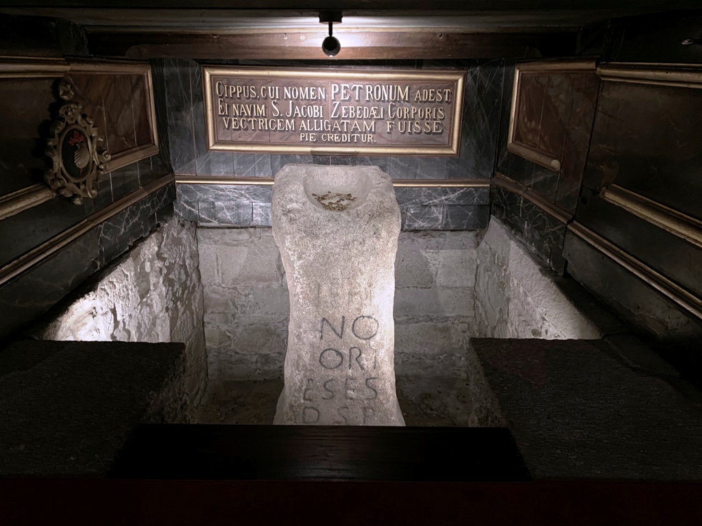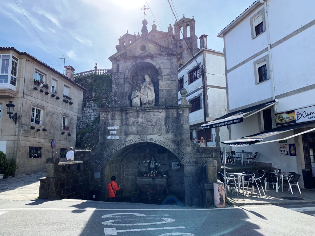 教会手前に祠の中にマリアの飾り棚(Fonte do Carme)があった。高台にある修道院(Convento do Carme)のテラスからの眺めはすばらしい。階段傍のアルベルゲ(Albergue de Peregrinos de Padrón)は満室のようだ。帰りに再度サンチャゴ教会により、教会内の