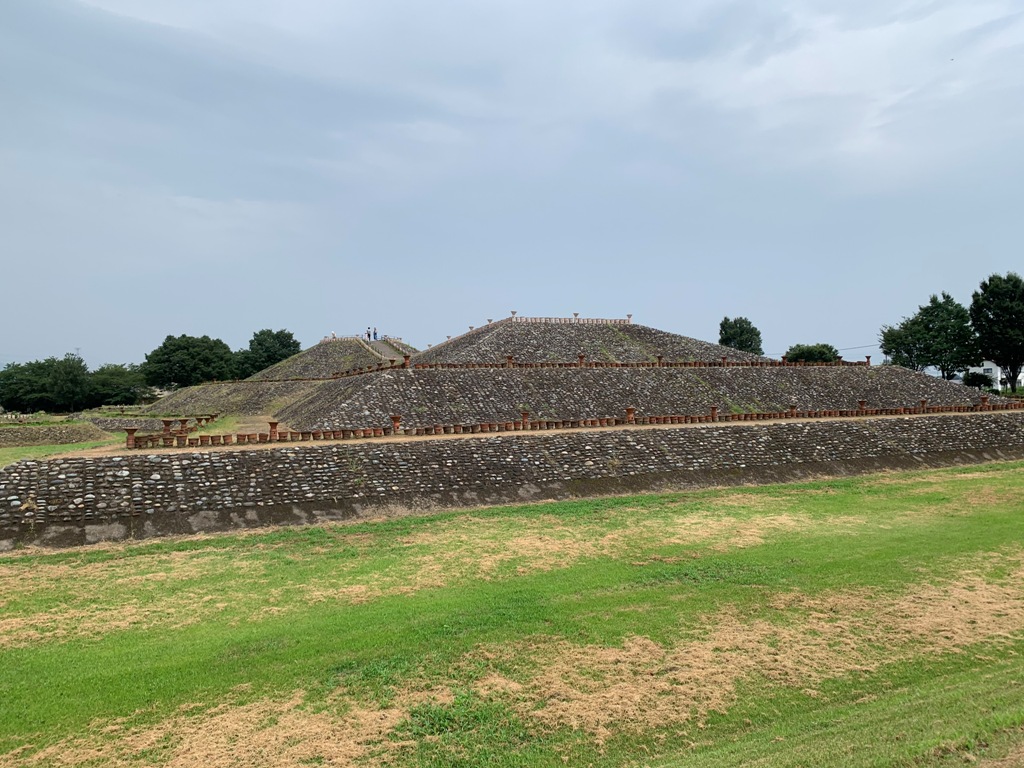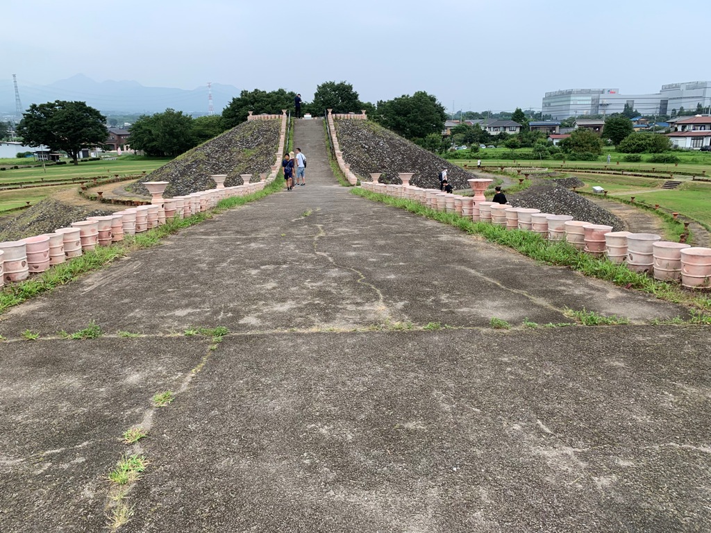 平成8年度から平成11年度までの4ヶ年をかけて保存復元整備されました。墳丘部や内堀のなかにある中島の法面には葺石を施し、後円部内には石棺展示施設も設置されています。また、内堤上には54体の人物・動物埴輪等が配置された「形象埴輪配列区」があり、墳頂部や中島等に円筒埴輪が巡らされています。(高崎市HP、案内板転記)