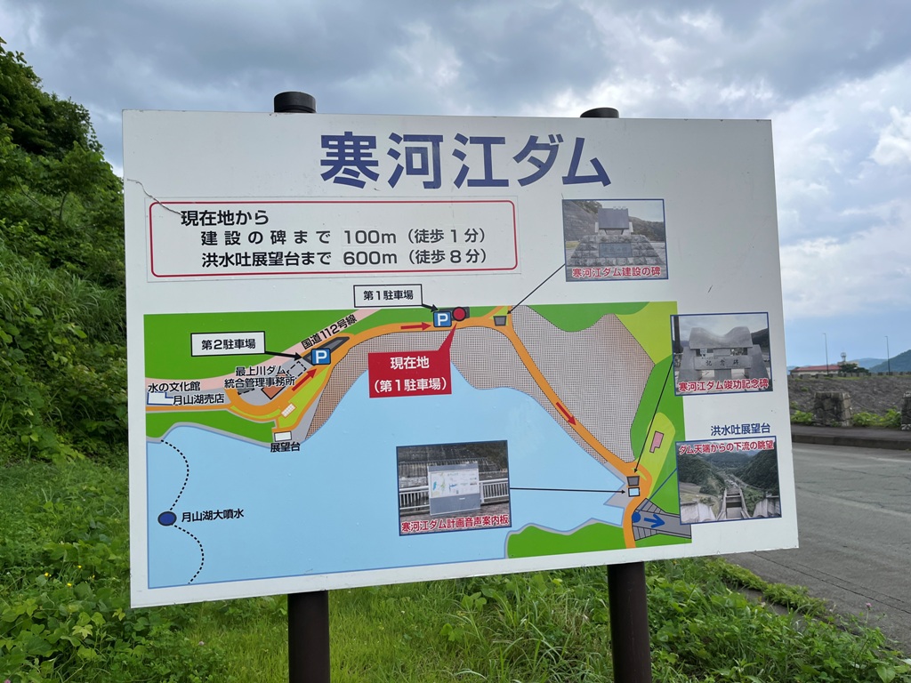 国道112号沿いにある人造湖で、山形県・村山地方の6市6町の水がめの役を果たしているほか、洪水による氾濫を防御したり、発電の目的を持った多目的ダムで、西川町民の生活を守る役目も果たしています。