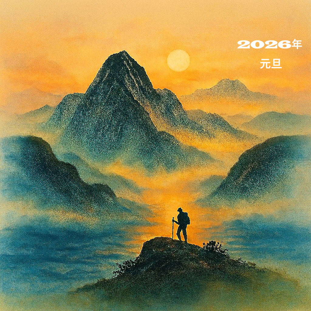 昨年の年賀状には時間が早く過ぎることに触れました。特に冬季は寒さと日の短さで殊更に感じます。昨年1年間は更に興味を抱くものに飢え始め、感動に鈍くなってきたことを実感する。今更に年を重ねたことを感じる毎日です。今日から2026年の新たな1日が始まる幸せを感じながら、日々の時間の重さを常に感じつつ過ごしていきたいと思います。