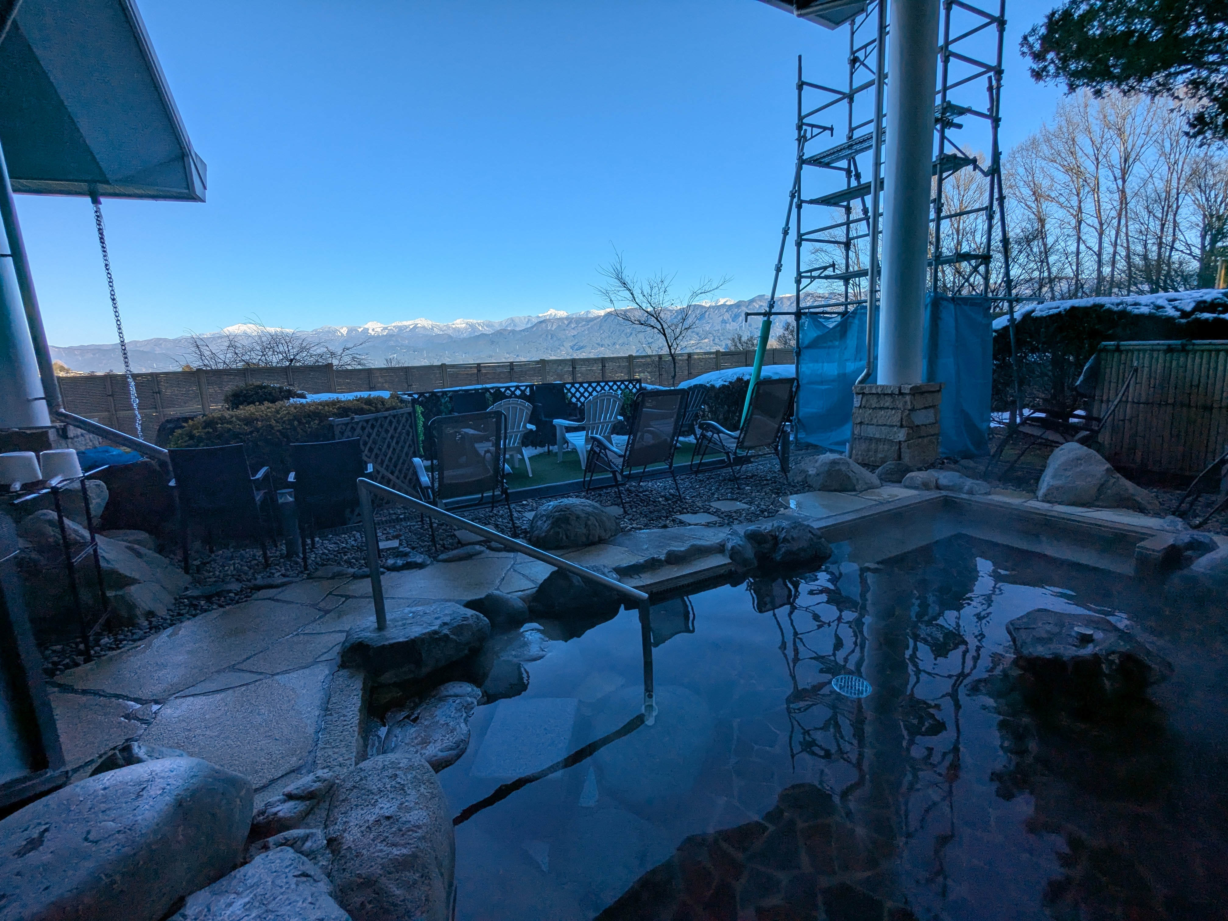 座光寺PAのSIを出ると近くにある。浴室から南アルプスの全景と伊那谷が見渡せる。
