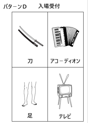 - Aパタ-ンからDパタ-ンは体の一部が、上から順に入って、耳・目・親指・足と続く。これが解っていると、どのパタ-ンの出題か関連付けが出来ます。
