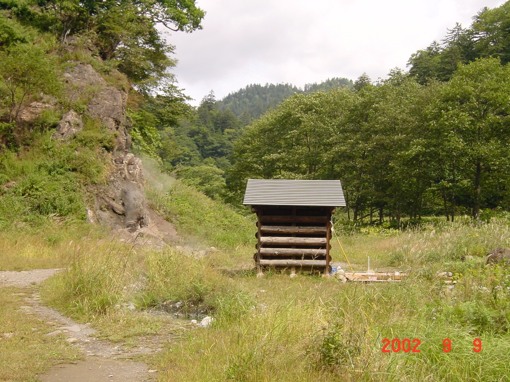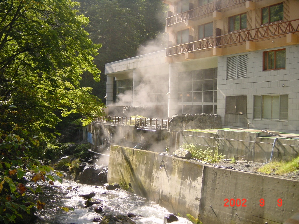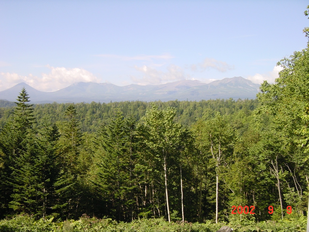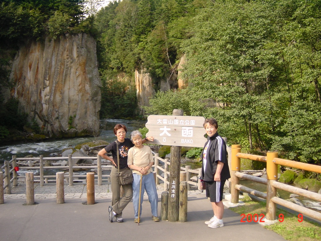 道北は家族と1973年9月に訪れて以来、29年ぶりの訪問となる。トムラウシ温泉から東室蘭の義姉宅に帰る道中、少し遠回りして十勝連峰が見渡せる白雲台展望台と層雲峡に立寄る。白雲台展望台から十勝岳・美瑛岳が良く見えた。そこから6Km程行った曙橋を左折して、未舗装のヌブントムラウシ林道を13Km行ったところにある秘湯中秘湯のヌプントムラウシ温泉に行く。熱いので加水しながら入浴する。曙橋まで戻り然別湖・糠平湖を経由して層雲峡に向かう。