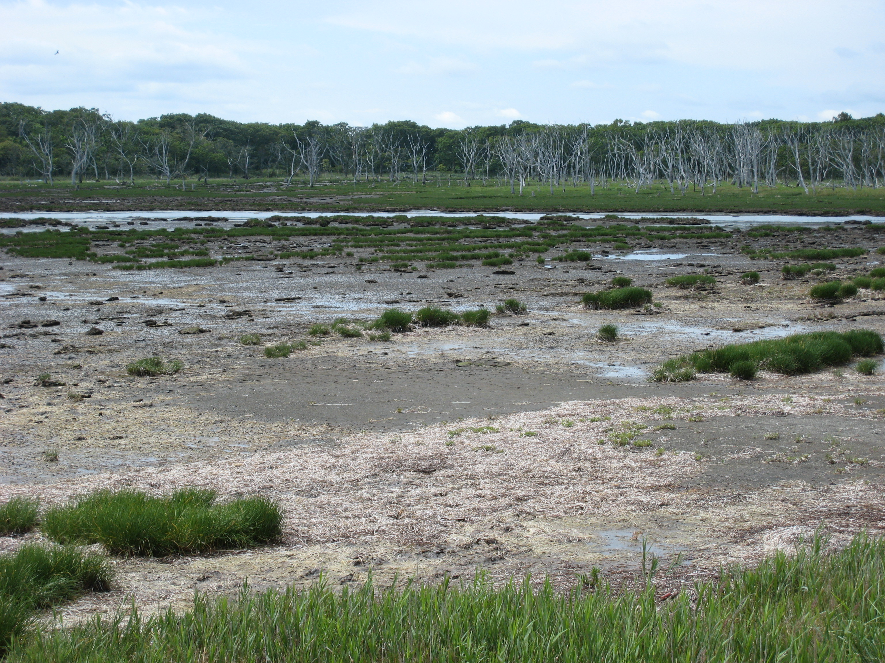 今日から本格的な道東巡りが始まる。知床羅臼に向かって車を走らす。途中の標津で半島が突き出しているのが見えたので、興味本位で先まで行ってみる。全長約26kmの日本最大の砂嘴と説明があるが、行けども何の変哲もない景色が続く。緑の中に風化したミズナラが立ち枯れたまま、白い骨のように見える。ナラワラと呼ばれている。他にも立ち枯れたトドマツがあり、トドワラと呼ばれている。どうも訪れた時期が観光に適さない時だったようだ。海岸線を走る国道335号を羅臼町までひたすら走る。道の駅知床らうすに13時過ぎに到着する。小休止して国道334号をウトロに向かって進む。知床峠駐車場から羅臼岳が手に取るように見える。近くにエゾ鹿が寝そべっていた。