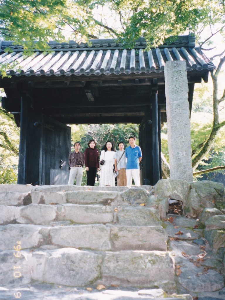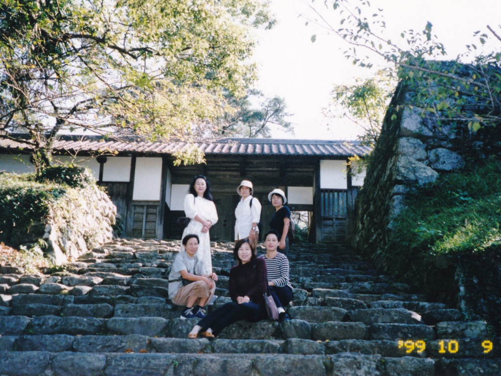 岡山を早朝に出発し、まず福岡県の秋月城を散策する。秋月城の裏手門として使用されていた長屋門と垂裕神社に続く秋月城本門(黒門)の前で記念写真を撮る。