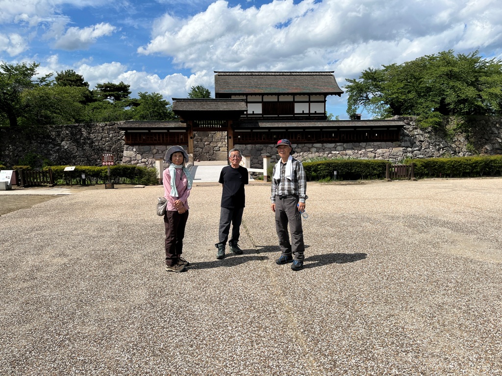 次に、松代城址公園に向かう。松代の真田邸等のある歴史的道すじを通り松代城址公園に行く。太鼓門から本丸に入り、東不明門橋を折り返して、北不明門を出る。花の丸御殿を経由して駐車場に戻る。