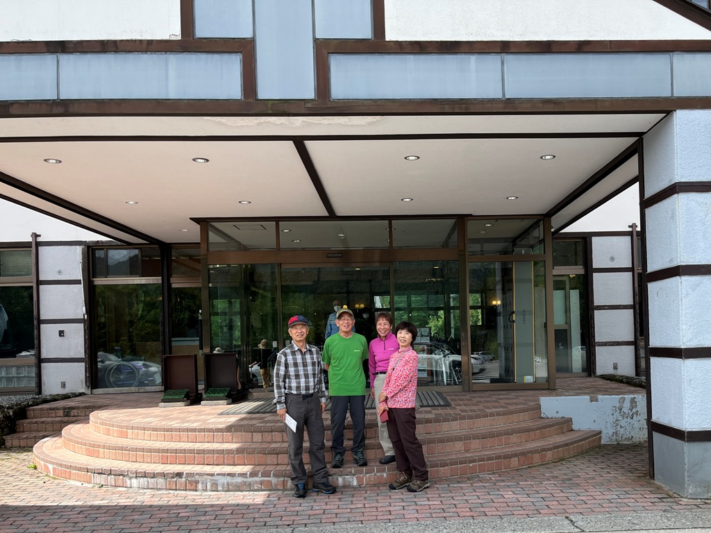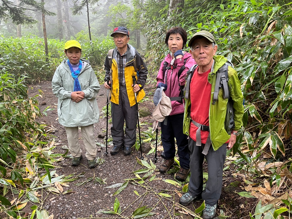 予定より早めに我家を出発する。天気は曇で少し青空が見える。焼岳の新中の湯登山口に着いた頃には雨が降っていた。暫く様子待ちをしたが、スマホで雲の動きから回復すると判断して出発する。2時間歩いても雨の止む気配がない。そのうち私の体調がおかしくなり遅れがちになる。皆が心配して引返す判断をする。引返し地点で写真を撮り、後日に場所の特定に利用する。登山口に戻っても雨は降り続き、私の体調も悪いままです。今夜の宿休暇村乗鞍高原のチェックインには早いので、白骨温泉経由でバッハアルプ湖に寄る。その傍らにリトルピークス夏季事務所があり食事提供がされていた。食事で時間を潰し、一ノ瀬園地を経て休暇村乗鞍高原に向かう。
