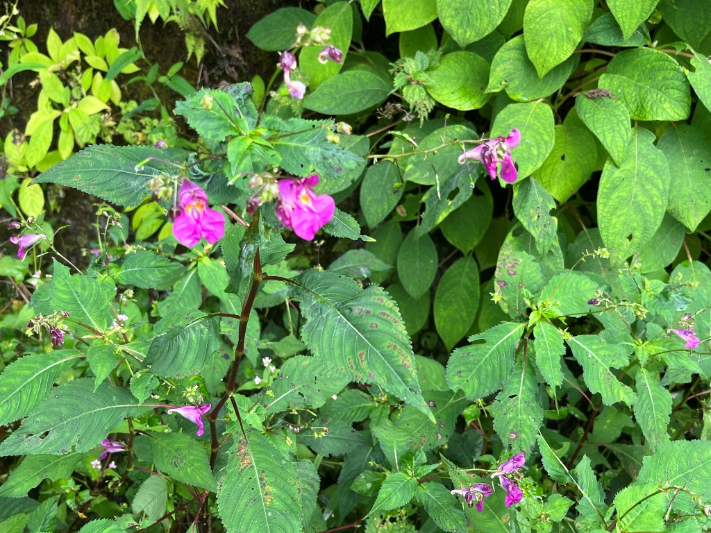 三留野宿本陣跡前を通り、中山道を離れ与川道へと入って行く。暫く林道を進んで行くと南木曾岳の登山口にさしかかる。その付近の畦道に沢山の野花が咲いていた。