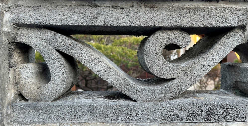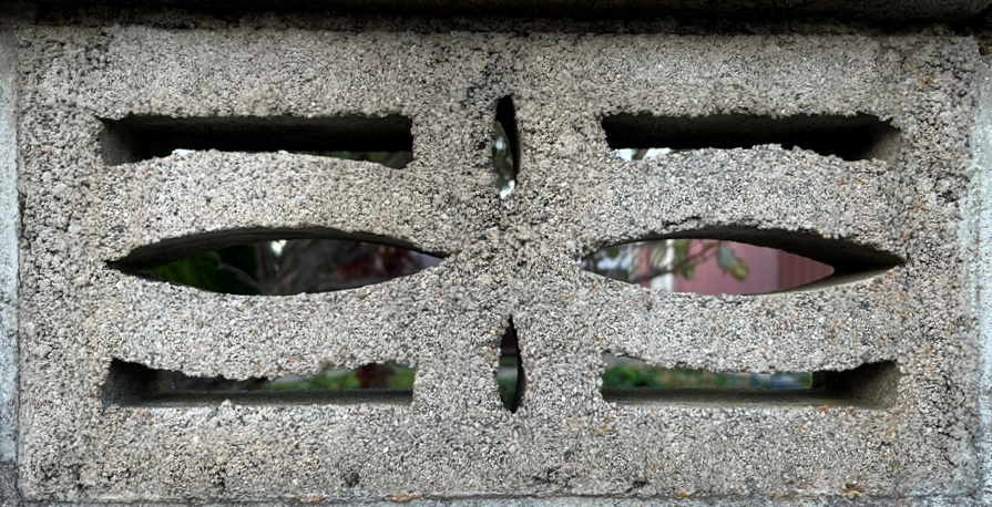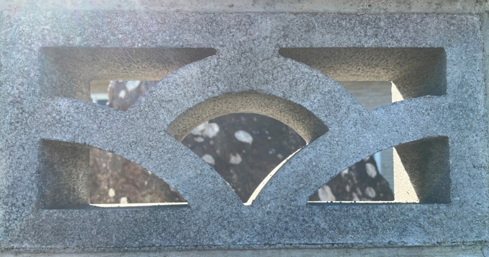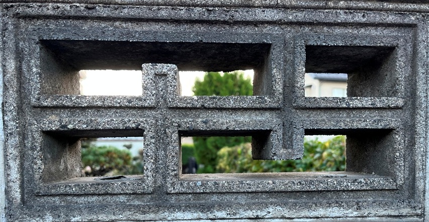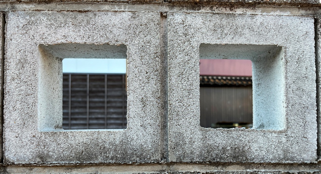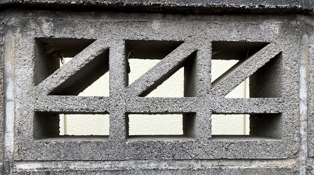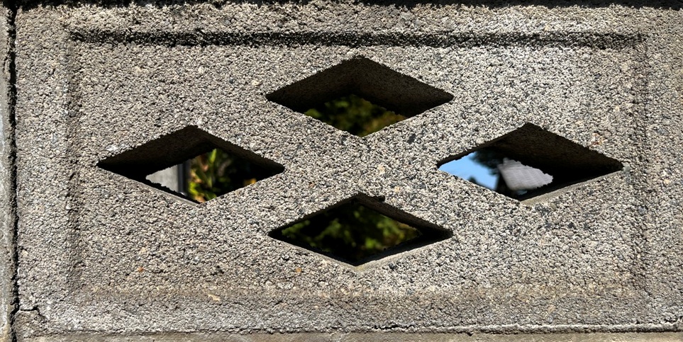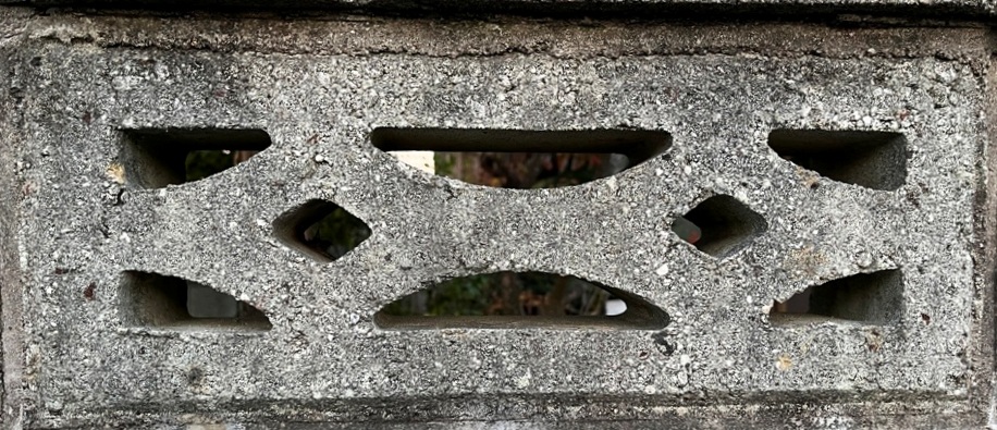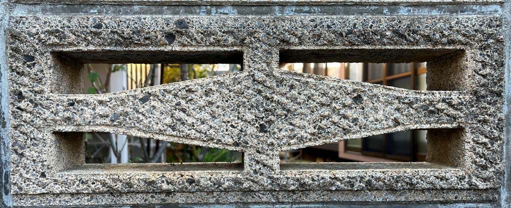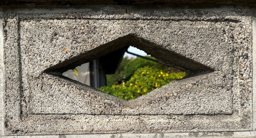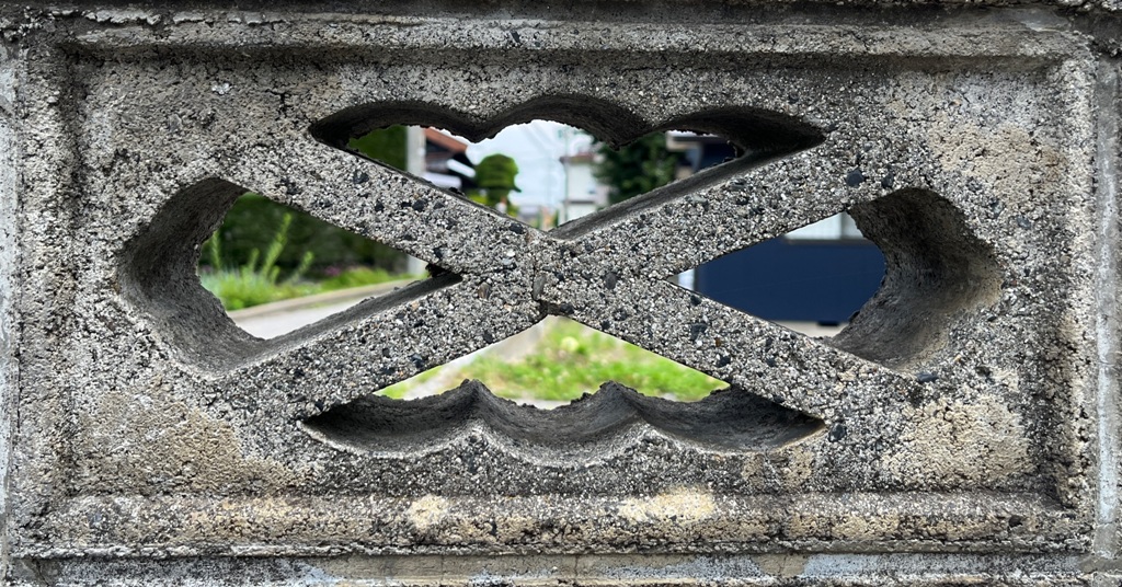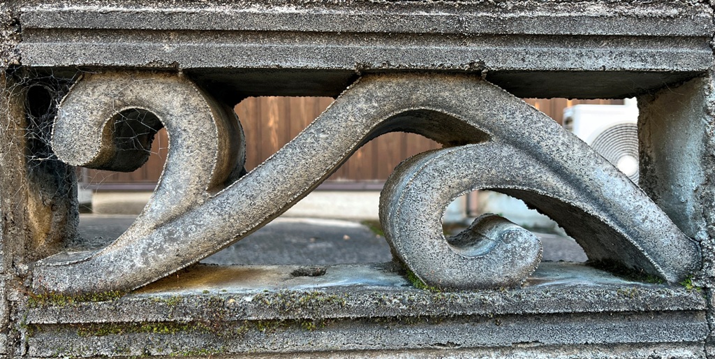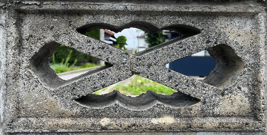 そもそも透かしブロックは何のためにあるのか調べてみると、風通しを良くするためと見た目を良くするが多かった。他にも目的があるのかも知れない。大抵上段に連続又は等間隔に同一デザインの透かしブロックが配置されている。中には数種類の透かしブロックがブロック塀全体に配置されている家もある。デザインとともに配置、密度、向きも観察要素となるように思う。ただ最近の家屋には、旧タイプのブロック塀は姿を見かけることはありません。古い民家のコンクリートブロック塀に組み込まれているだけなので、やがて消滅の運命を辿るでしょう。