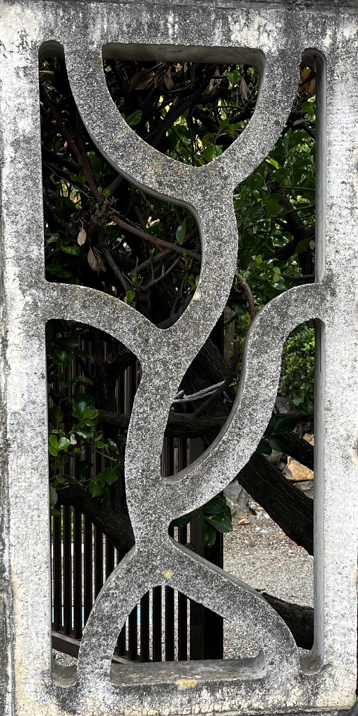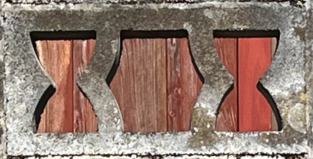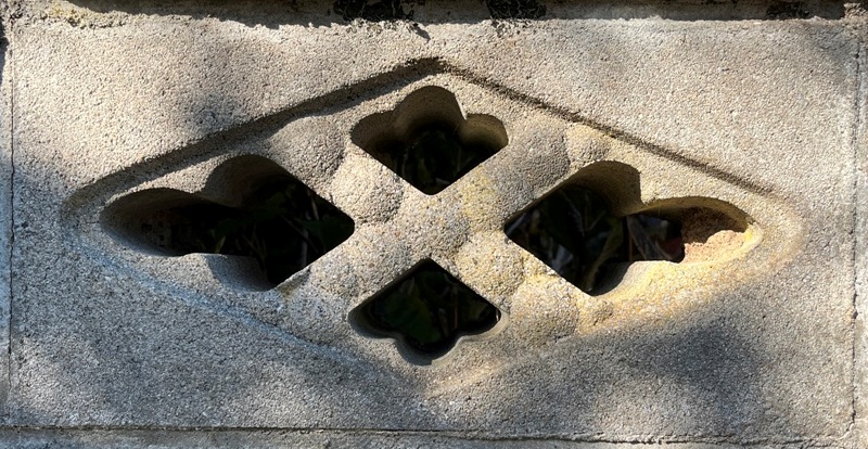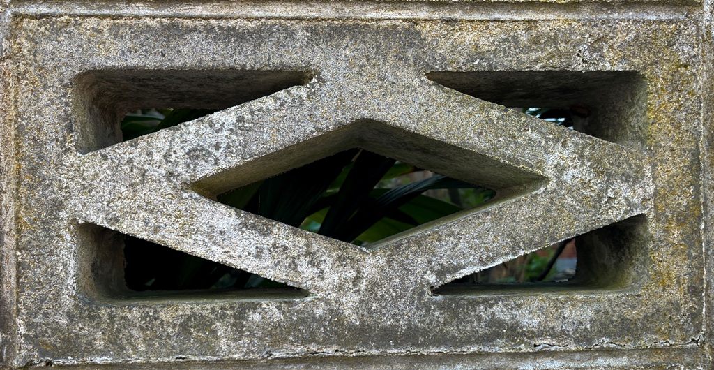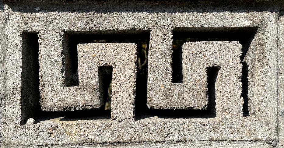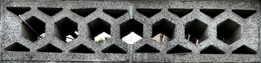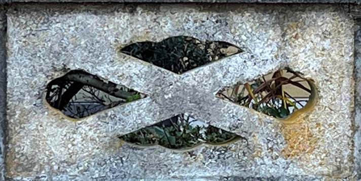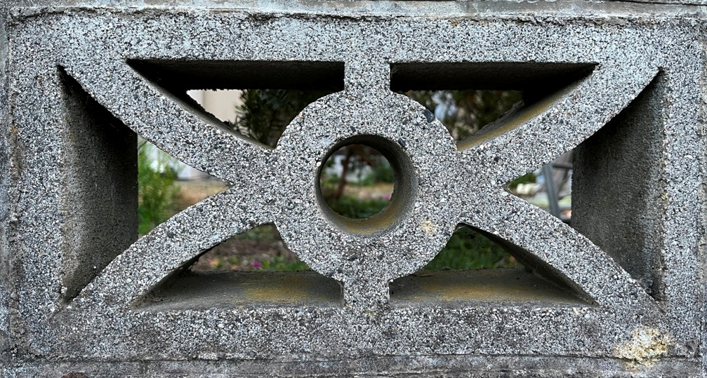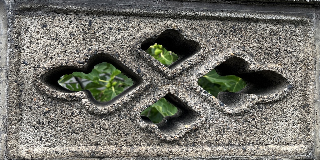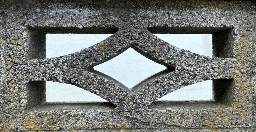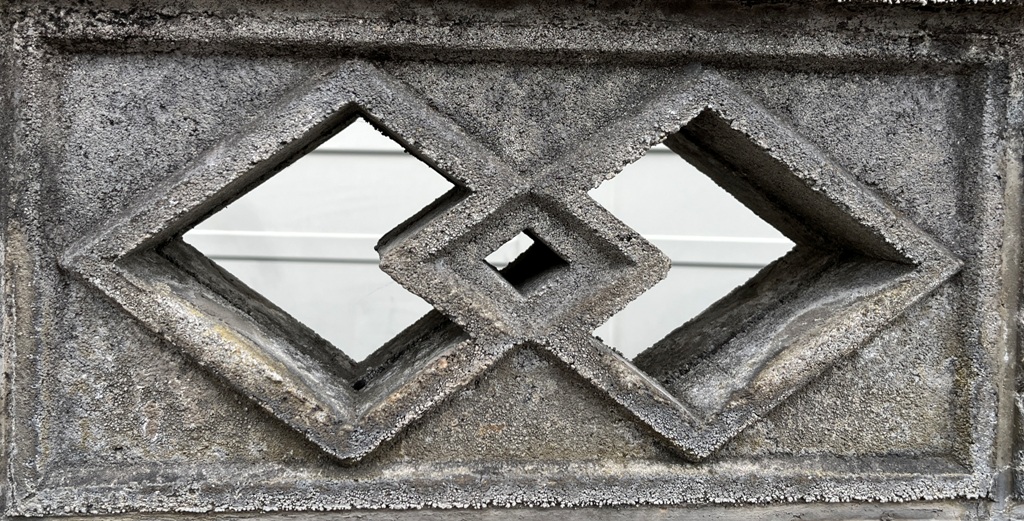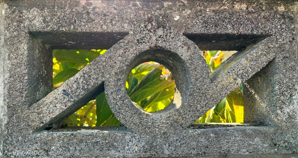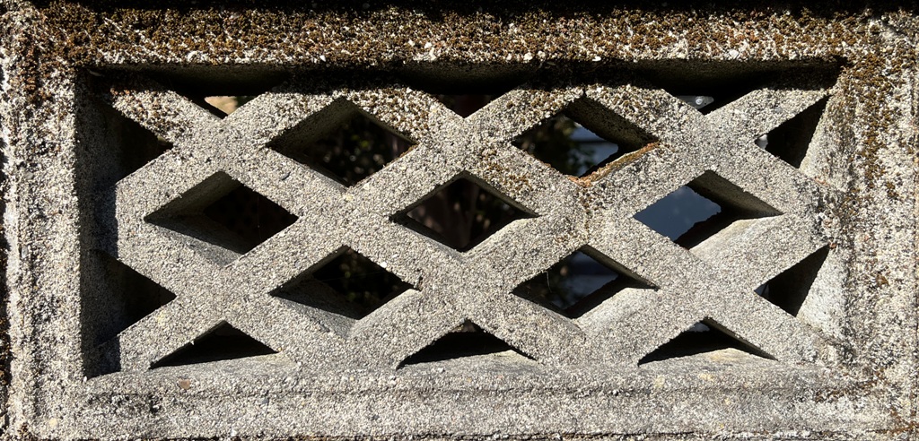 そもそも透かしブロックは何のためにあるのか調べてみると、風通しを良くするためと見た目を良くするが多かった。他にも目的があるのかも知れない。大抵上段に連続又は等間隔に同一デザインの透かしブロックが配置されている。中には数種類の透かしブロックがブロック塀全体に配置されている家もある。デザインとともに配置、密度、向きも観察要素となるように思う。ただ最近の家屋には、旧タイプのブロック塀は姿を見かけることはありません。古い民家のコンクリートブロック塀に組み込まれているだけなので、やがて消滅の運命を辿るでしょう。