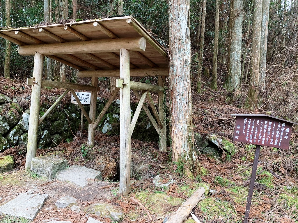 岩村城には17箇所の井戸がある。八幡曲輪にある霧ヶ井は、城主専用の霊泉です。巌邑府誌には、敵が攻めてきた際、城内秘蔵の大蛇の骨をこの井戸に投じると、雲霧が湧き出て城を覆い尽くし、城を守ったと記してあります。(案内板抜粋)