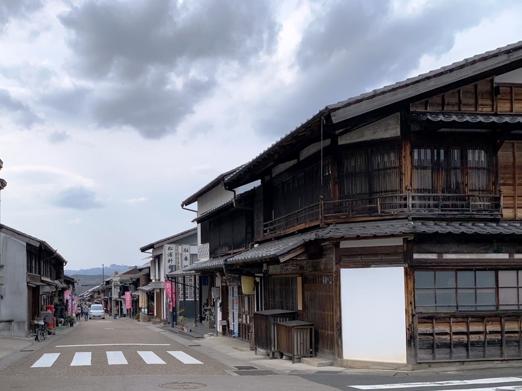 現在でも歴史的・文化的なたたずまい・町並みが、枡形や町の中を流れる疎水など、他では見られない城下町。全長約1.3kmの古い町並み周辺には当時の面影を残す商家や旧家、なまこ壁などが今も佇んでいます。(案内板抜粋)