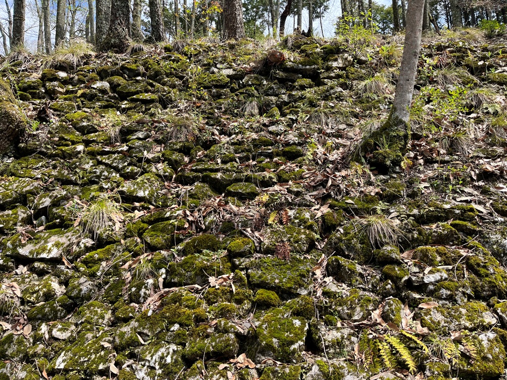 鎌刃城の見どころは、なんといってもその壮大な土塁です。主郭を囲む土塁は高さ約10メートル、幅約20メートルにも達し、当時の築城技術の高さを感じることができます。