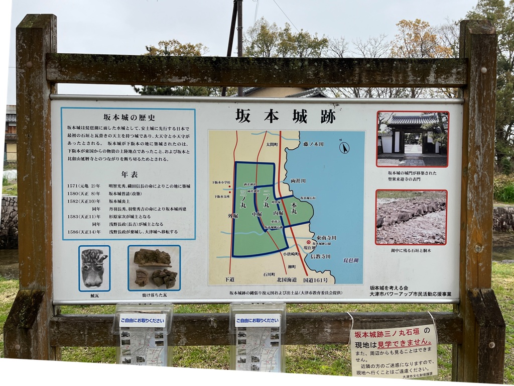 現在、坂本城跡は公園として整備され、城址公園として観光客や地元の人々に利用されています。城跡からは琵琶湖や周辺の風景を一望することができ、四季折々の美しい景色が訪れる人々を魅了しています。また、城址内には歴史を紹介する展示や案内板も設置されており、歴史ファンや家族連れにも楽しめる場所となっています。