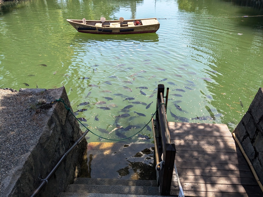 明治23年(1890)に松平家に払下げとなり、天守台に玉藻廟、三ノ丸に現在の披雲閣が建築されました。昭和29年(1954)に高松市の所有となり、翌年に国史跡として指定され、同年5月5日から高松市立玉藻公園として一般に公開しています。(写真説明文は高松城案内板から抜粋)
