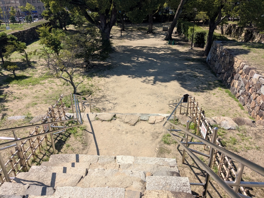 江戸時代には、内堀、中堀、外堀の三重の堀を有し、約66万㎡(約20万坪)という広さでした。3重4階+地下1階の天守がそびえ、要所には約20の櫓が建ち並び、その威容を誇っていました。明治初期に外堀が埋め立てられ、さらに徐々に中堀の一部が埋立てられ、明治17年(1884)には老朽化を理由に天守が解体されました。市街化が進み、 現在約8万m2のみが城跡として残っています。現在では艮櫓、月見櫓、渡櫓、水手御門が現存し、大正6年(1917)に建築された披雲閣があります。