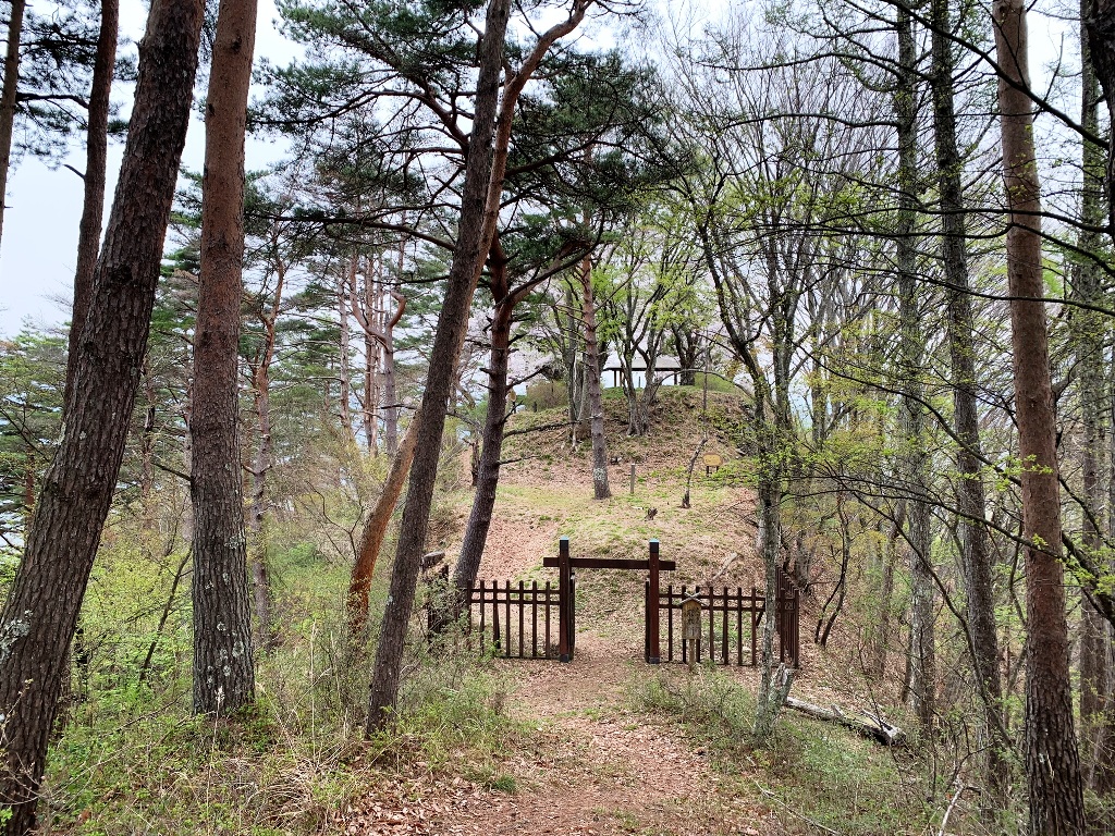 坂北駅より東、旧善光寺街道、青柳宿を経て標高900メートル、尾根の末端が山城で南、北、西の三斜面は急峻であり、東に大小八つの郭と7条の空堀があります。西端を本丸とし要害嶮岨で、麻績村、筑北村坂北地域の山城が一望できる位置にあります。(筑北村HP転記)