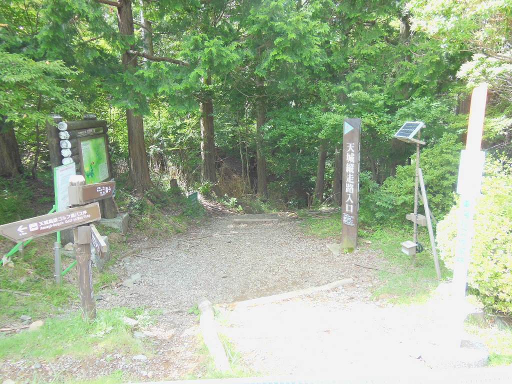 登山当日、全国的に不安定な天気で、ここもどんよりしていた。朝9時頃出発し、芦ノ湖スカイライン(520円)、伊豆スカイライン(980円)を経由して、天城高原ゴルフ場前の天城山登山口に11時前に到着した。スカイラインはガスがかかり、全く視界がなかった。ときおり小雨模様となり、先行きが危ぶまれた。しかし、伊豆半島を進むにつれ、太陽が見え隠れするようになった。登山口では、まったく天気の心配は杞憂だった。