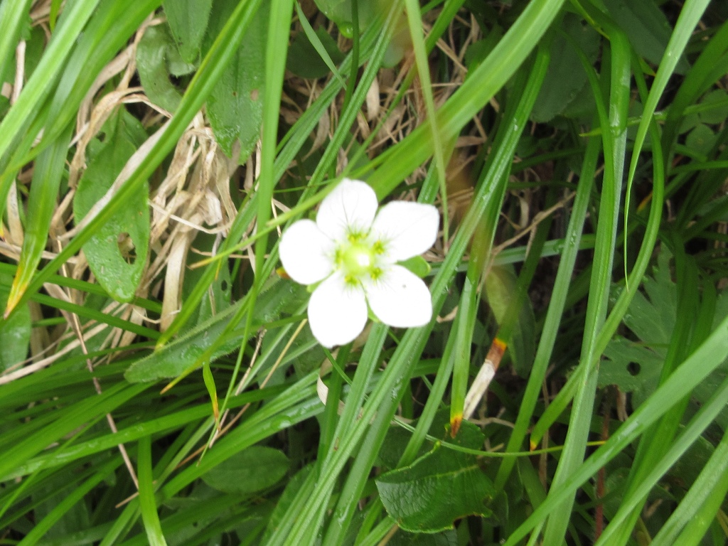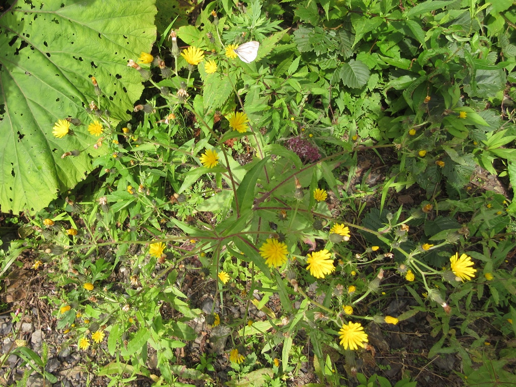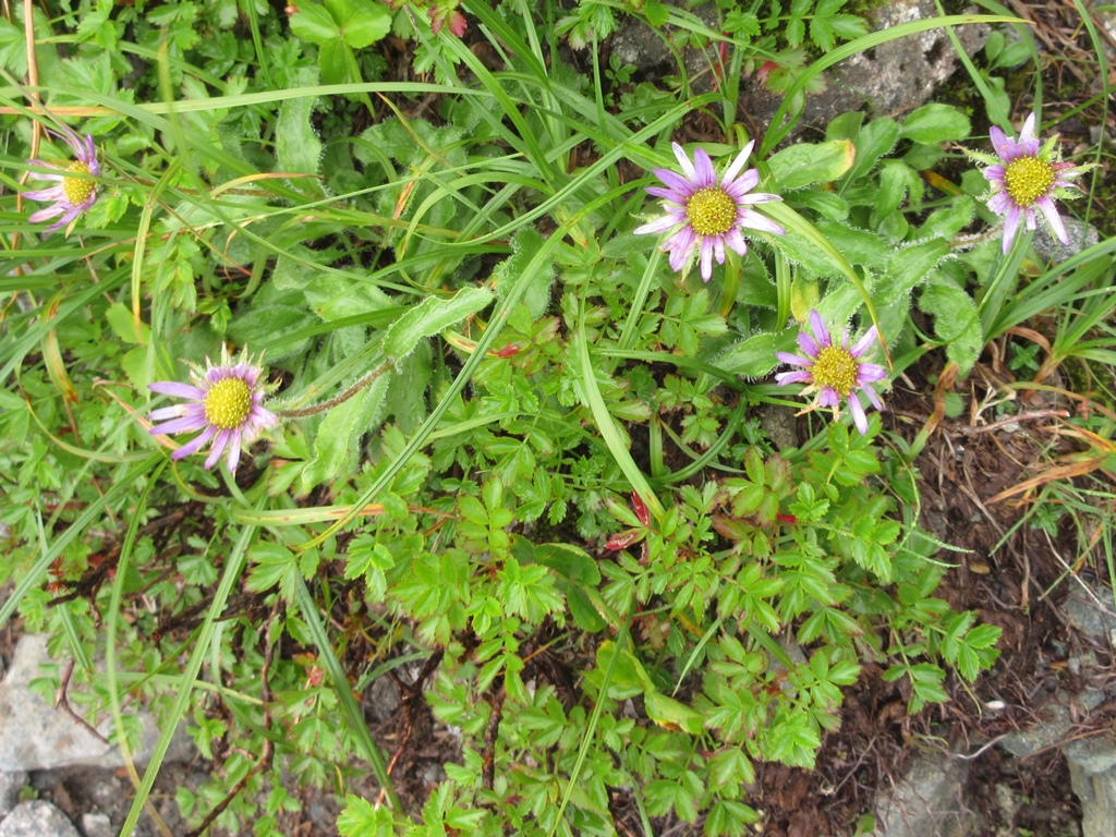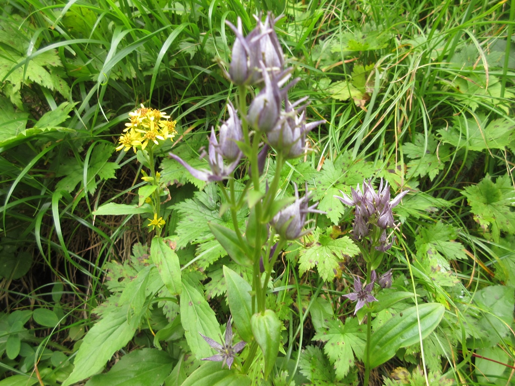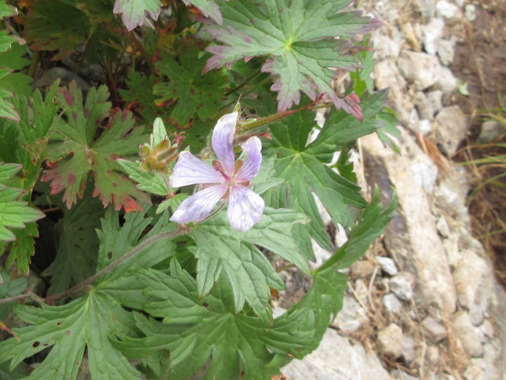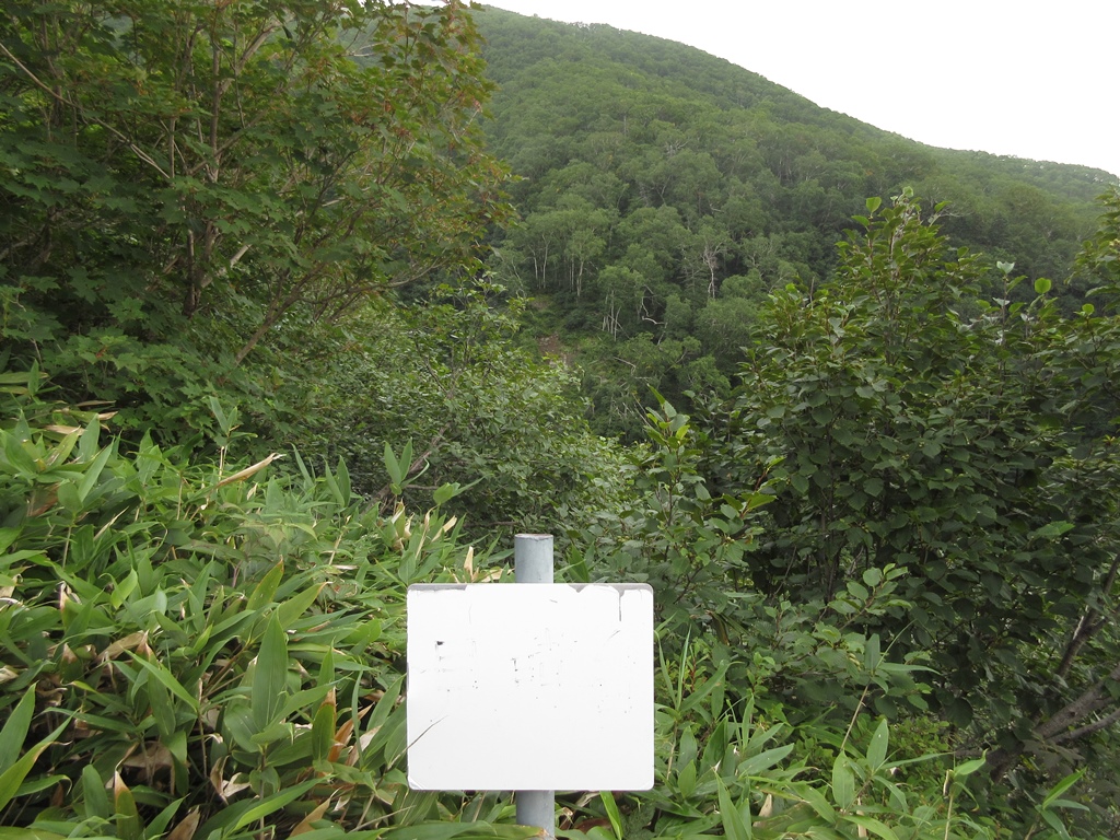 そこから急坂の直登となる。登山道は灌木帯の根本を覆う笹原の中を歩く。笹の根っこで滑りやすく、歩き難い。尾根状の唯一の緩斜面を超え、少し下ると再び急坂となる。少し進むと、消えかけた案内板に見晴台と書いてあった。そこまで、渡渉点から1時間半の急坂で、息があがる。その先15分程で消えかけた中間点の案内板に達する。さらに40分程進むと、水場のあるガレ場にぶつかる。その付近から高山植物が目立つようになる。眼下に幌尻湖が姿を見せる。灌木帯につけられた登山道を抜けると、一面のお花畑となる。時期は少し遅いが、色とりどりの花が咲き乱れ、疲れた体が癒される。また、その付近から大岩が見え、気分的にも楽になる。