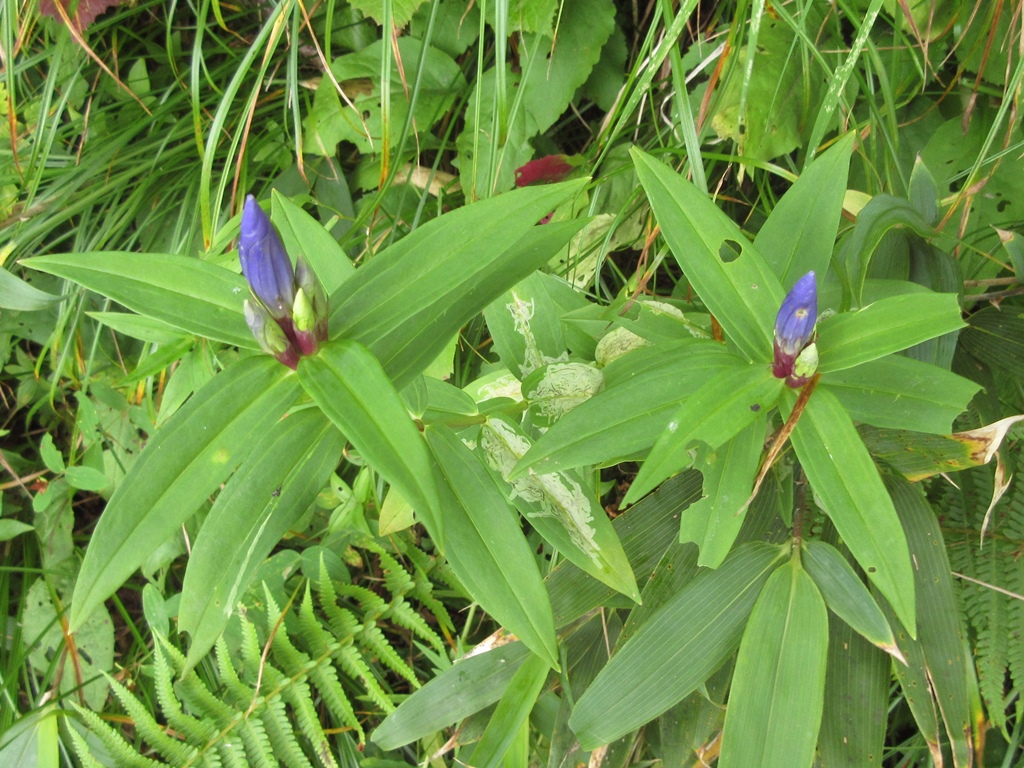 寝袋の睡眠は熟睡出来ない。うつらうつらの中、早出の登山客の音で目覚める。5時前には相当明るくなっていた。幌尻岳登山に必要のない荷物を山荘にデポして身軽になる。昨日山荘に着いたので、今日の工程は余裕がある。5時20分に新冠ポロシリ山荘横を出発する。幌尻岳新冠陽希コースと改名された登山道唯一の渡渉点までは、幌尻沢沿いのなだらかな巻道を進む。山荘から10分程行ったところのロープを張った急坂の迂回路が唯一の危険個所だ。渡渉点まで両サイド笹原の中を歩く。所々登山道が笹で覆われている。湿地帯にはフキとシダが群生している。幌尻沢渡渉点まで48分で着く。水嵩は少なく、登山靴を履いて渡れた。