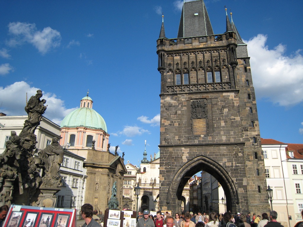カレル橋(Karlův most)は、チェコの首都プラハを流れるヴルタヴァ川に架かる石造橋で、旧市街とプラハ城地区を結ぶ町の象徴的存在である。建設はカレル4世の命により1357年に始まり、15世紀初頭に完成した。全長約516メートル、幅約10メートルのゴシック様式の橋で、当時としては画期的な耐久性をもつ構造であった。基礎工事には卵黄を混ぜたモルタルが用いられたという伝説も残り、中世の土木技術の高さを物語っている。