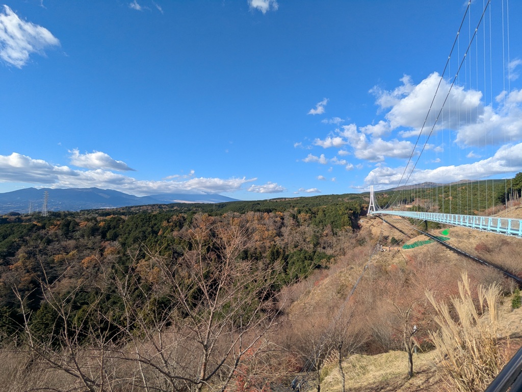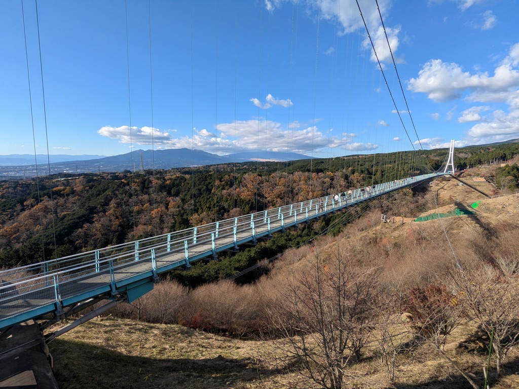 三島スカイウォークは、静岡県三島市笹原新田にある日本最長級の歩行者専用吊り橋で、正式名称を「箱根西麓・三島大吊橋」という。2015年に開業し、全長約400メートル、高さは最高で約70メートルに達する。眼下には深い渓谷と豊かな森が広がり、天候に恵まれた日には駿河湾や伊豆半島、さらに世界文化遺産の富士山を望むことができることから、県内屈指の展望スポットとして人気を集めている。
