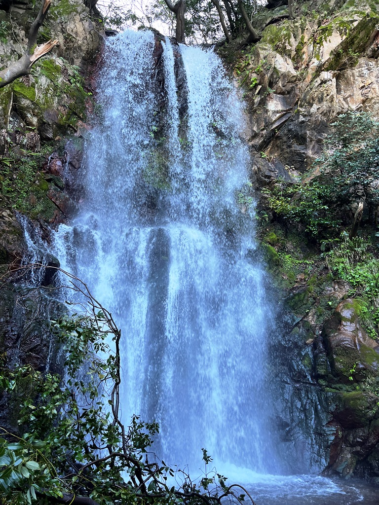 落差は約16m。海岸沿いにある滝ながら、周囲は緑に囲まれており美しい風景を堪能することができます。。癒しのスポットとなっています。
