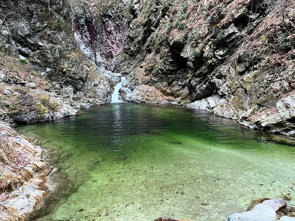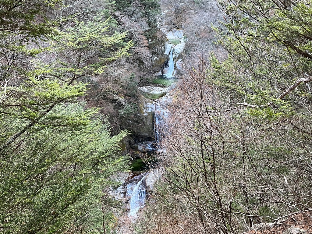 尾白川渓谷駐車場から往路渓谷道を行き、神蛇滝を折り返して復路尾根道を帰ると、3時間程の所要時間です。ちなみに、私は不動滝手前1kmのところを折り返して(時間的に行けなかった)、2時間24分の所要時間でした。