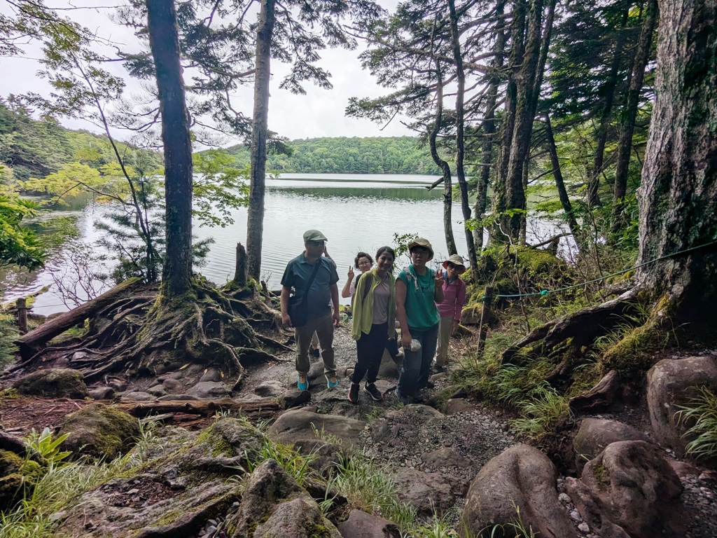 湖の周囲には約1.35kmの遊歩道が整備されており、初心者でも気軽に一周できるハイキングコースとして人気です。木道が整備されているため、足元が悪い場所でも安心して歩けますが、雨天時や苔の湿った状態では滑りやすいため、歩きやすい靴での訪問が推奨されます。所要時間は約40分ほどで、途中には「白駒荘」や「青苔荘」といった山小屋があり、軽食や休憩も可能です。