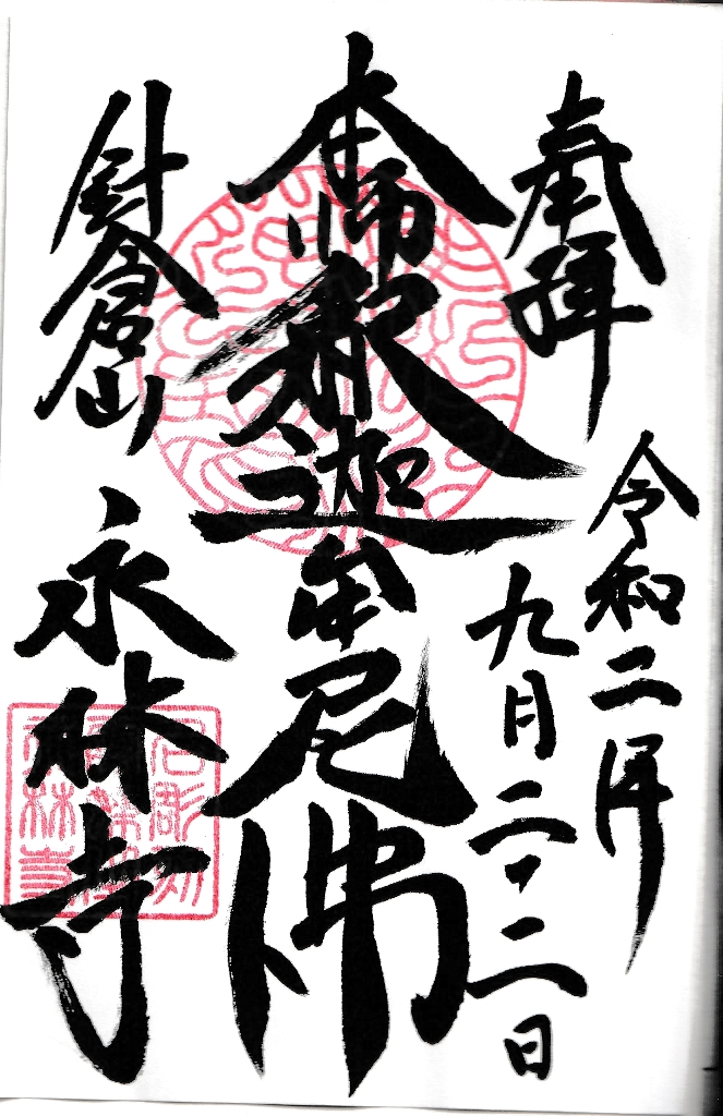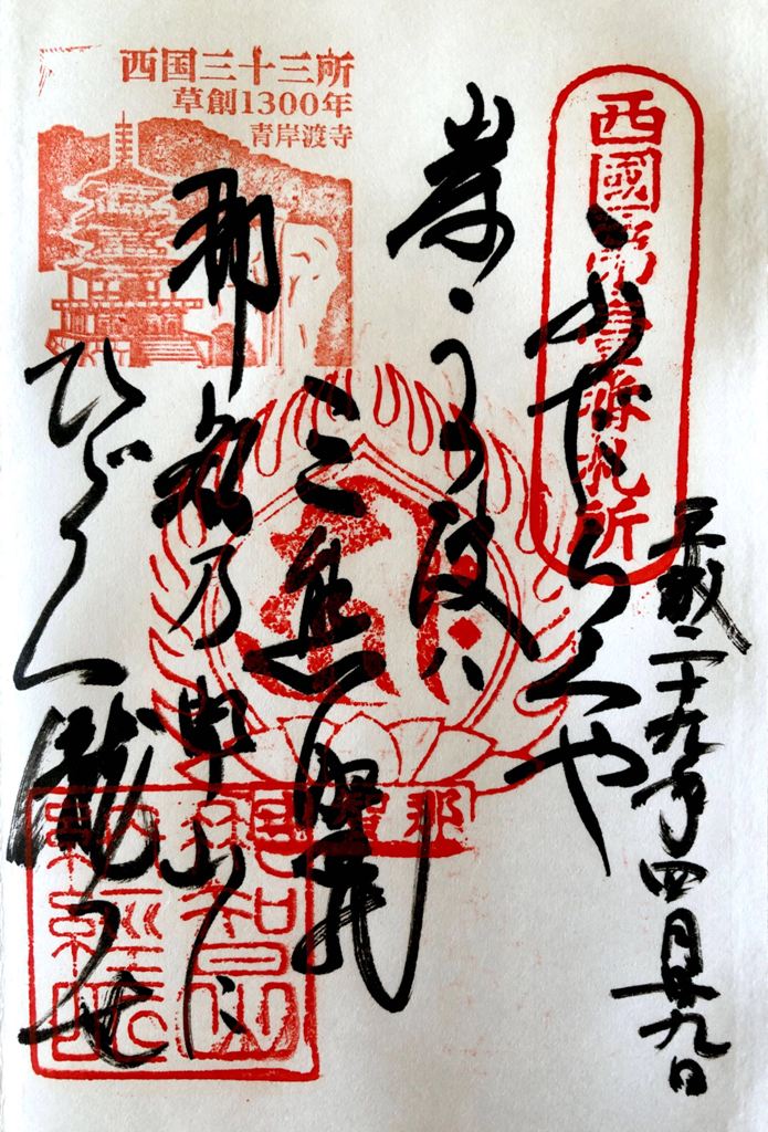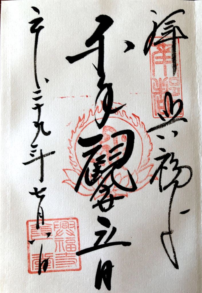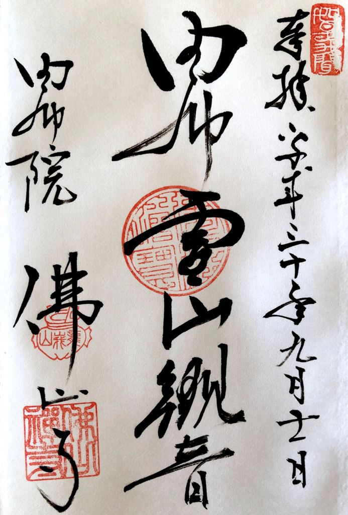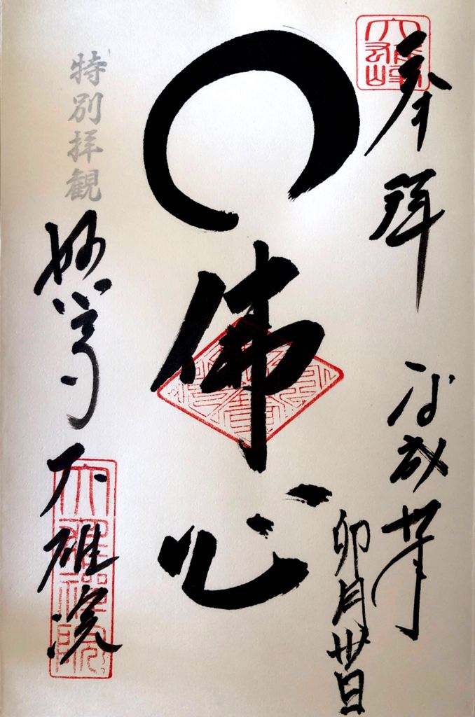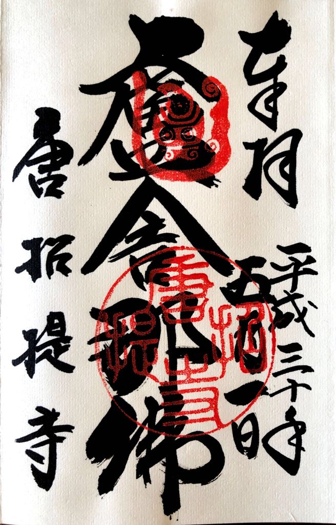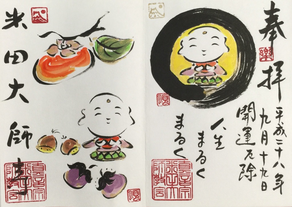 私は、四国88ヶ所巡りで初めて御朱印なるものを知った。1番札所で御朱印帳を購入し、写真とともにお寺を訪れた証として記帳してもらいました。当時300円でしたが、88ヶ所全寺で記帳すると26,400円必要となる。今は御朱印集めが一種のブームとなっている。寺院のみならず神社、お城等いろんな所で発行されている。当初は朱色の印章を押した台紙に寺院名と日付を住職が自筆で書いたシンプルなものだった。今では絵柄が入ったり、色付けされたりしてデザインに神社仏閣等の独自性が工夫されだした。このことも、御朱印集めのファンを増やす要因となっている。値段の方も差別化が図られて、それなりに高くなっている。神社仏閣等の大きな収入源になっている。