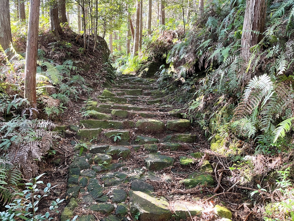 熊野古道の世界遺産の道はどこにでもあるような山道で、違う点は歴史を感じられる石畳、多少の遺物と熊野古道に関わる歌碑があることで、他には何の変哲もない険しい山道としか感じられない。私みたいに、歴史的背景に疎く、信仰心に乏しい者にとって、世界中から数多くの人たちが熊野を目指して歩くのか俄かに信じ難い。