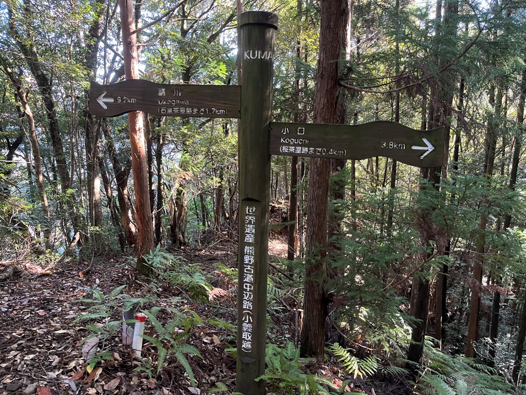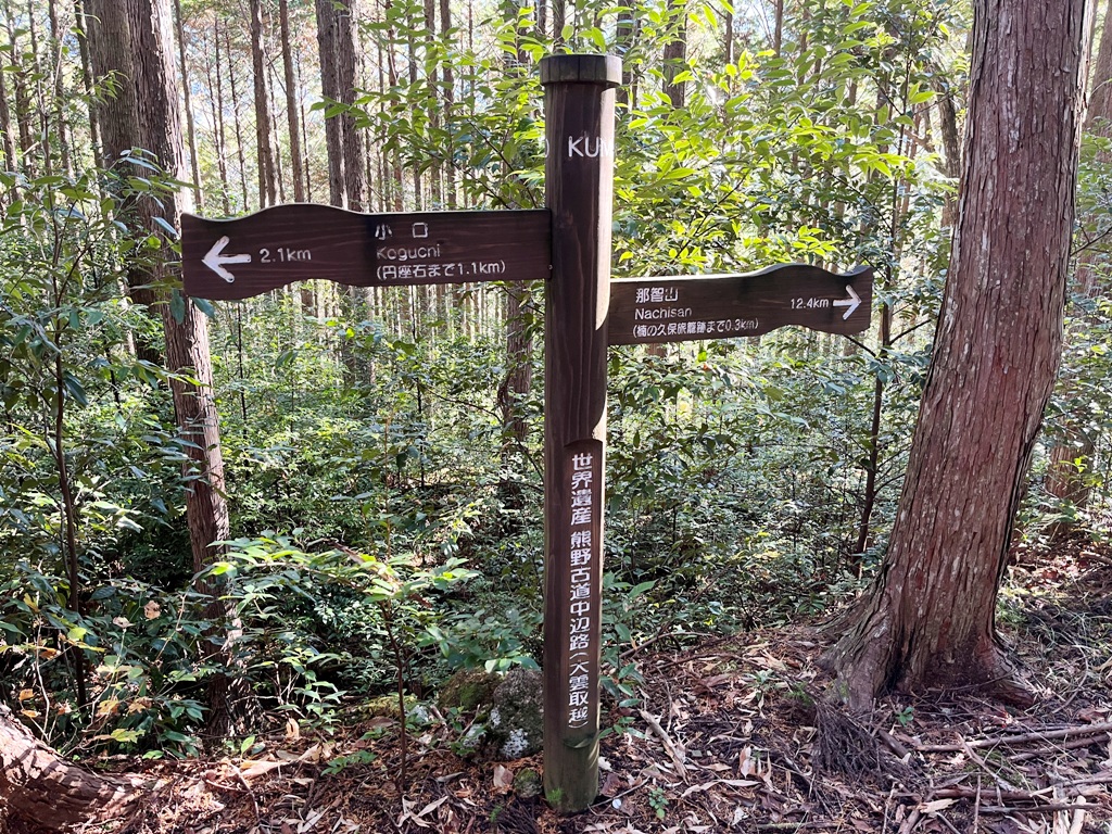 中辺路_小口(8:24 1分) ⇒ 大雲取入口(8:25 19分) ⇒ 道標28(8:44 6分) ⇒ 円座石(8:50 14分) ⇒ 楠ノ久保旅籠跡(9:37 48分) ⇒ 胴切坂表示板(10:25 13分) ⇒ 越前峠(11:04 39分) ⇒ 石倉峠(15:34 20分) ⇒ 地蔵茶屋跡(12:03-12:30 57分) ⇒ 色川辻(13:27 29分) ⇒ 舟見峠(13:56 5分) ⇒ 船見茶屋跡(14:00-14:07 38分) ⇒ 登立茶屋跡(14:45 18分) ⇒ 那智高原公園(13:57 1時間2分) ⇒ 青岸渡寺(15:57 5分) ⇒ 熊野那智大社(15:59-15:19 17分) ⇒ 那智の滝(16:20-16:30 40分) ⇒ 新宮ユーアイホテル(17:10)